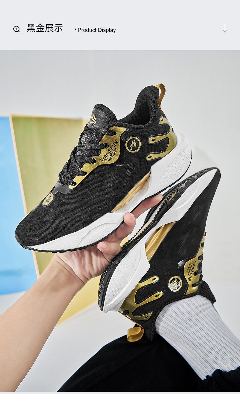【輕便百搭】秋季透氣薄款運動男鞋【黑金色】一雙