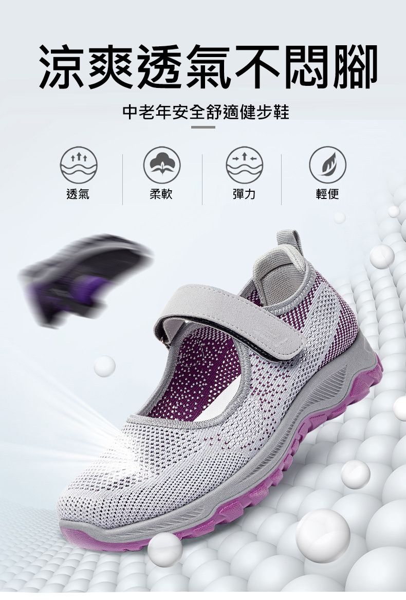 女士舒適涼爽透氣健步鞋【買一送一】【黑紫色】兩雙