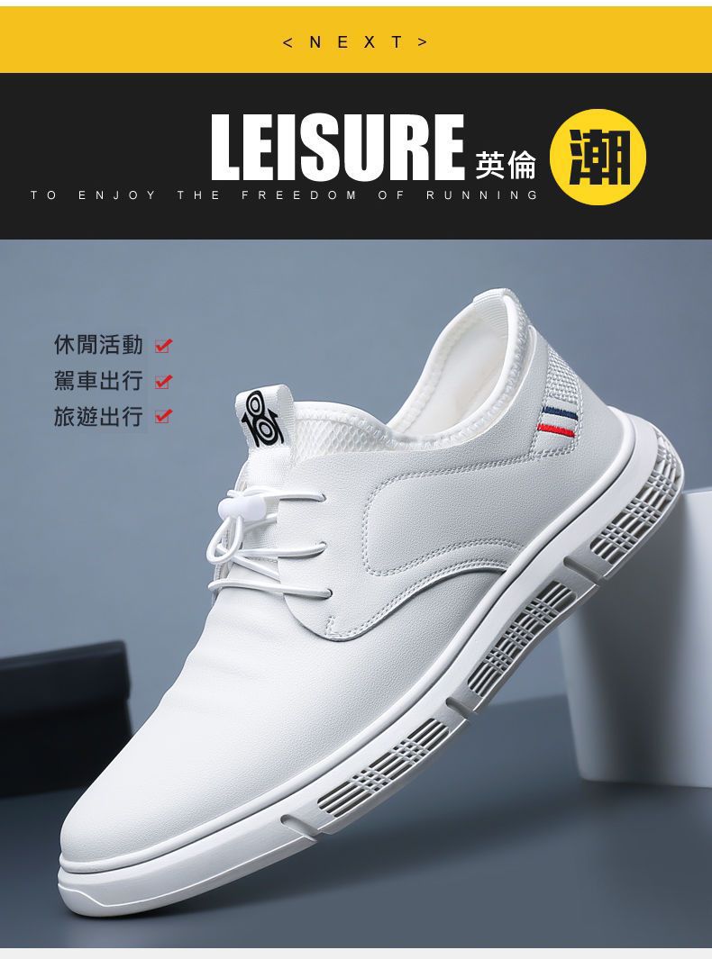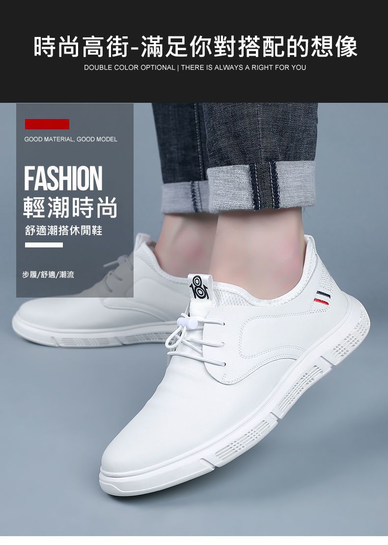 【透光透氣百搭】春季新款男士皮革網布運動鞋