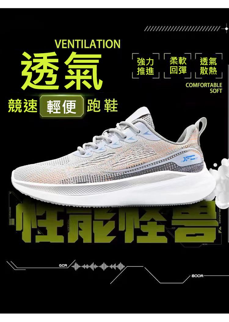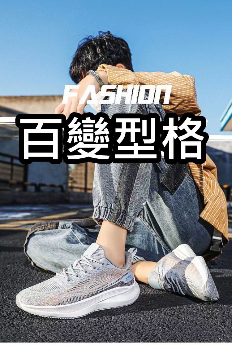 【不悶腳!】圓頭皮網拼接男運動鞋