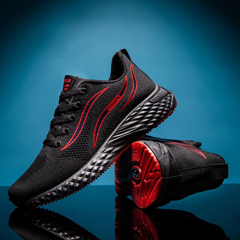 【透氣防滑】針織圓頭繫帶男士運動鞋