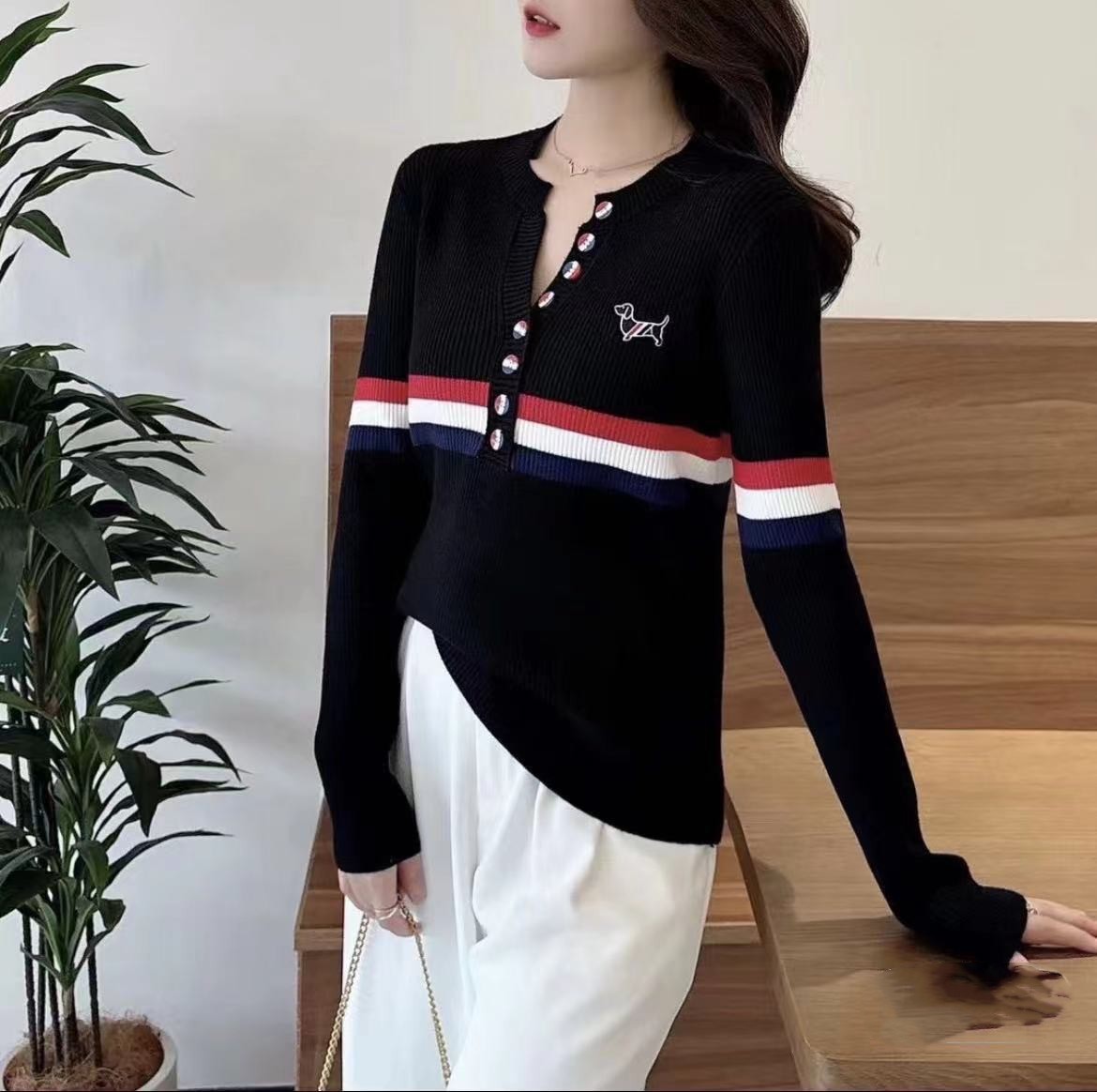 排扣刺繡女士長袖【秒殺四件!】兩件黑色+一件白色+一件灰色(到手四件,每件449元!)