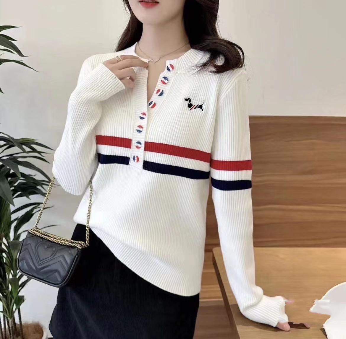 排扣刺繡女士長袖【秒殺四件!】一件黑色+一件白色+兩件灰色(到手四件,每件449元!)