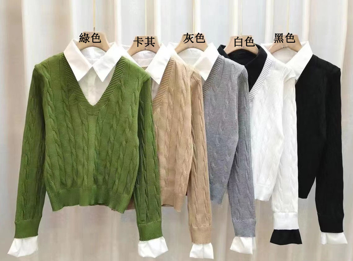 學院風假兩件套【秒殺5件!】黑色+綠色+白色+卡其色+灰色各一件(到手5件,每件420元!)