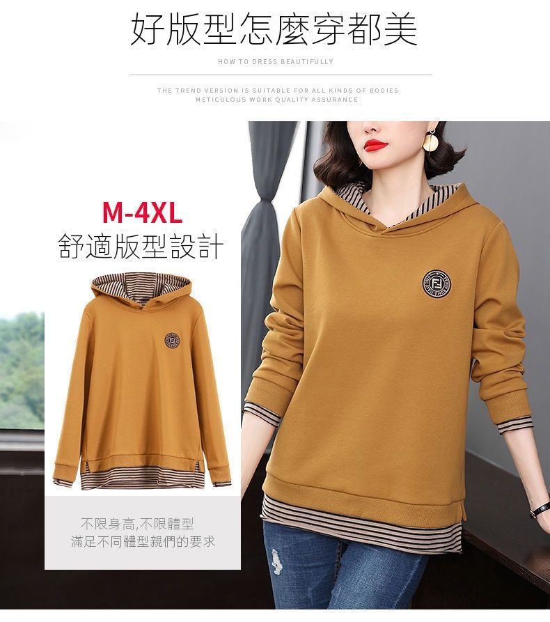 連帽條紋親膚純棉衛衣【買一送一】黃色+咖色各一件(到手兩件,每件549元!)