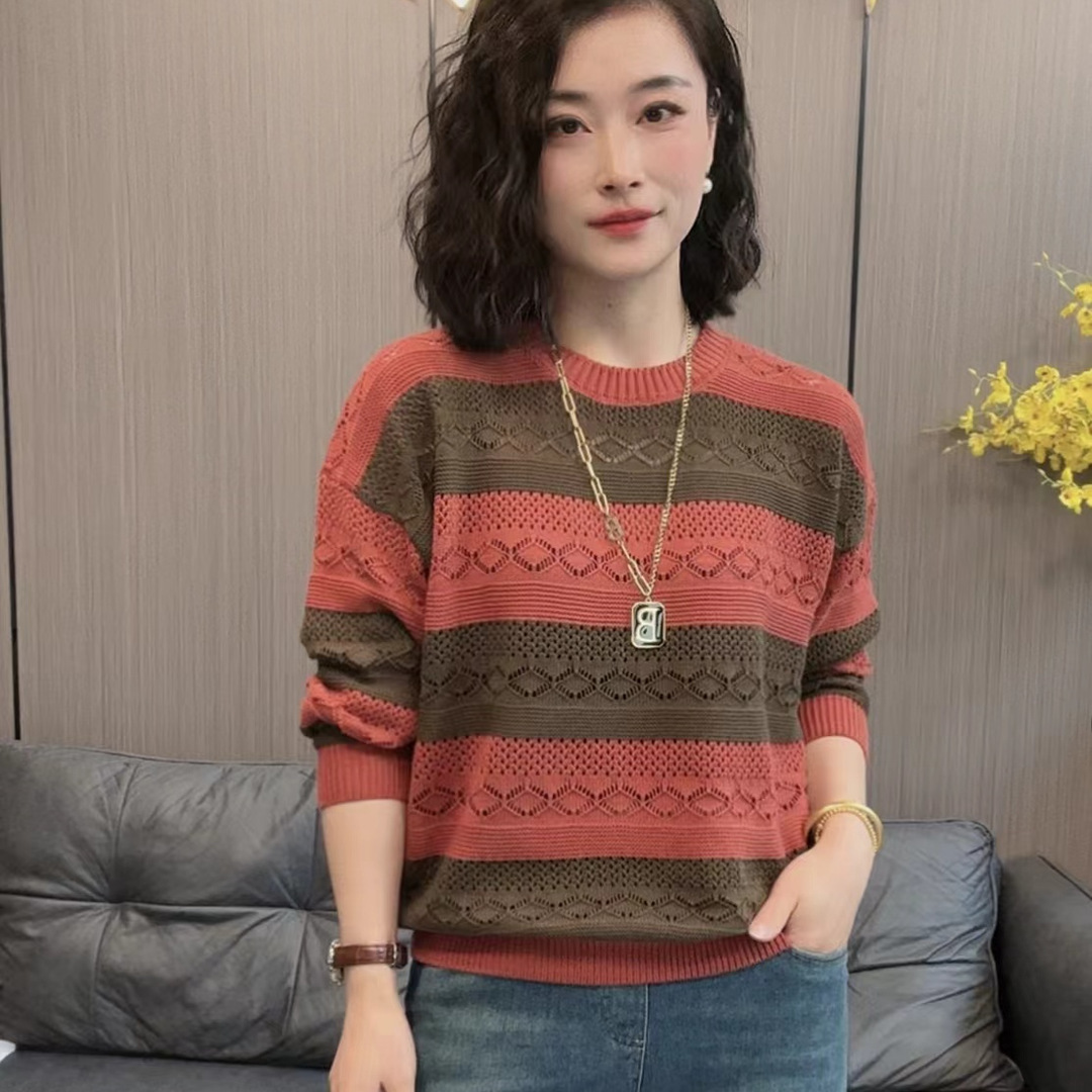 暢銷時尚條紋拼接百搭針織衫【買一送一】米色+紅色各一件(到手兩件,每件549元!)