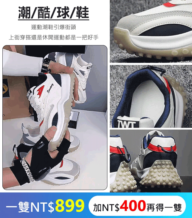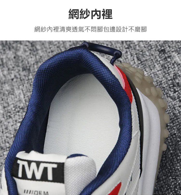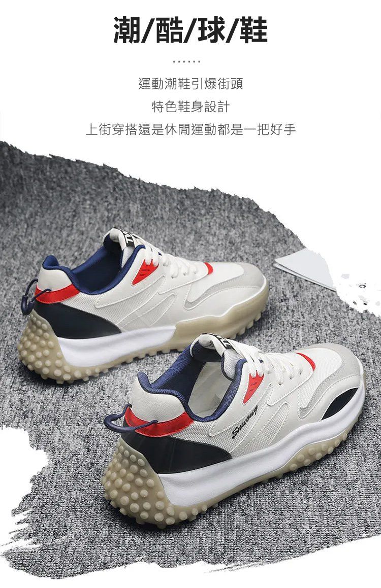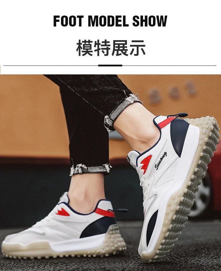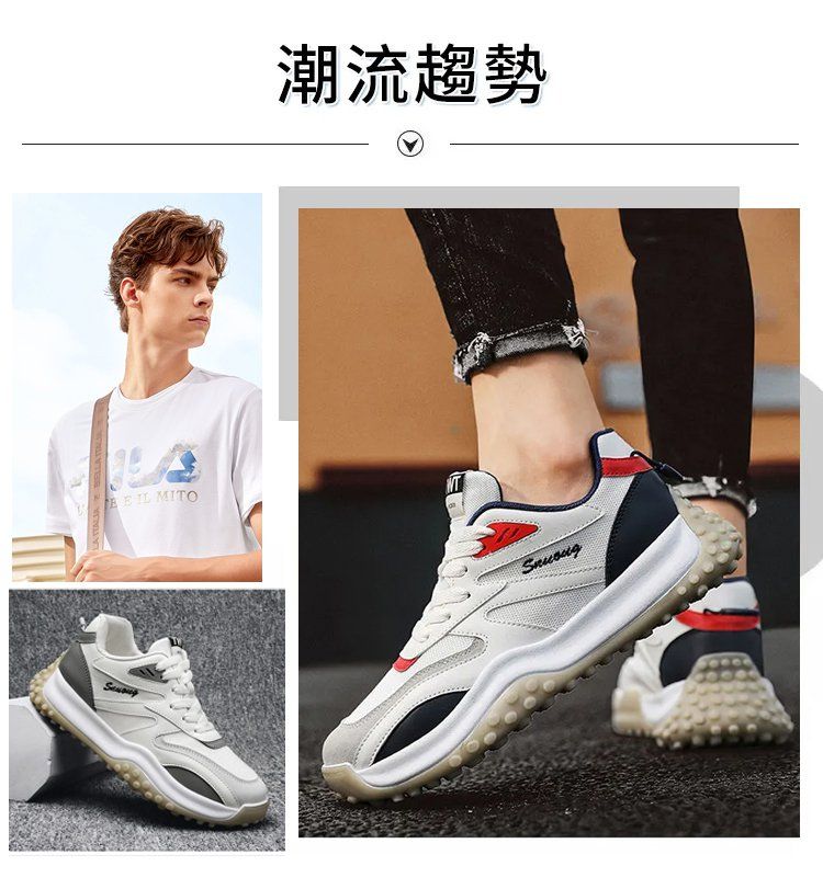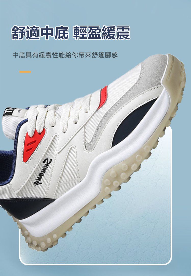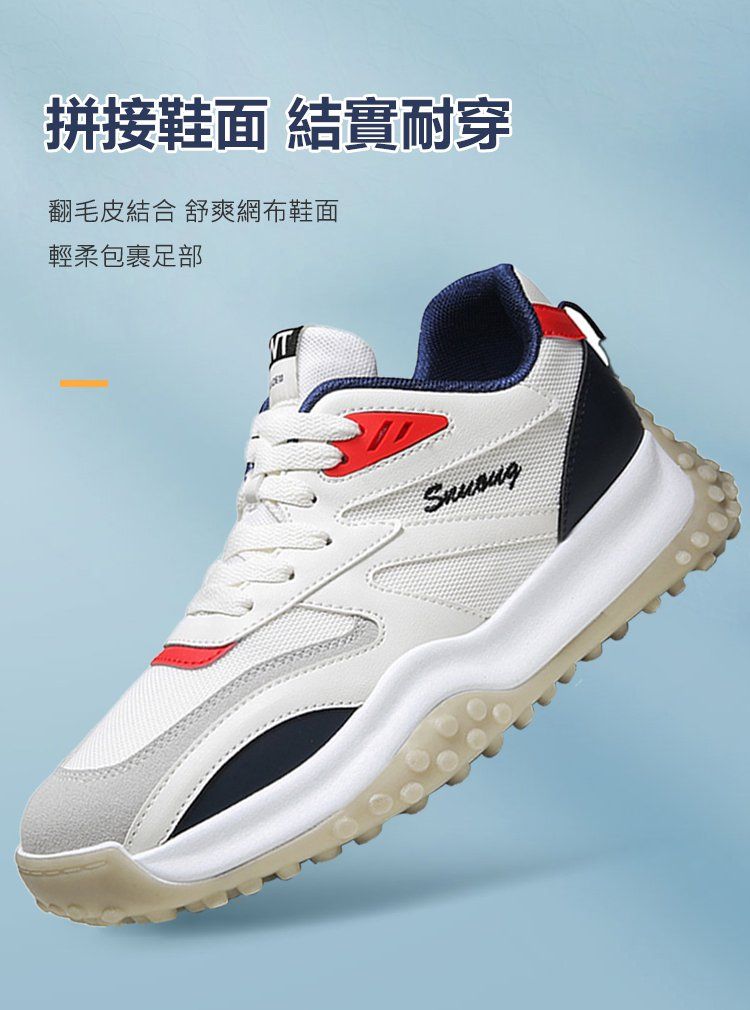 【美國時尚】男士緩震透氣運動鞋【白紅色】+【白灰色】各一雙