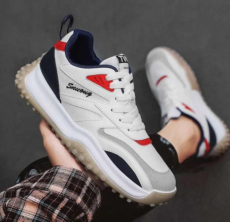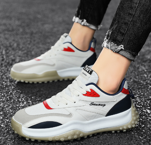 【美國時尚】男士緩震透氣運動鞋【白紅色】一雙