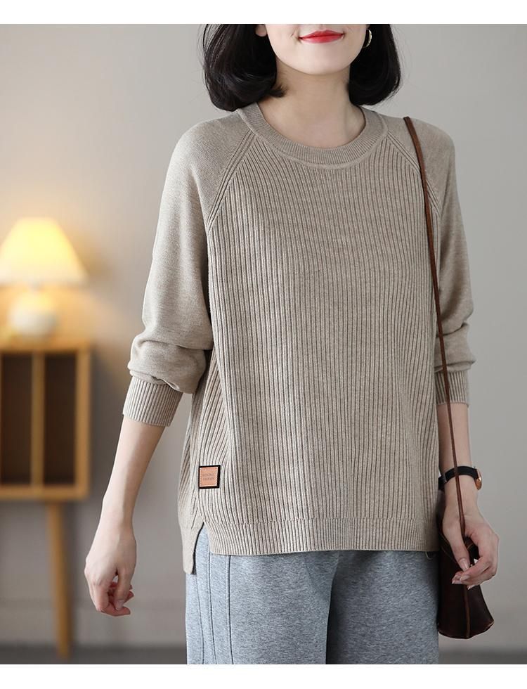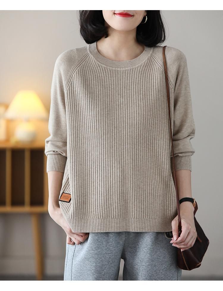 秋冬純棉女士打底針織衫【買一送一】【灰色】+【駝色】各一件(每件低至649元)
