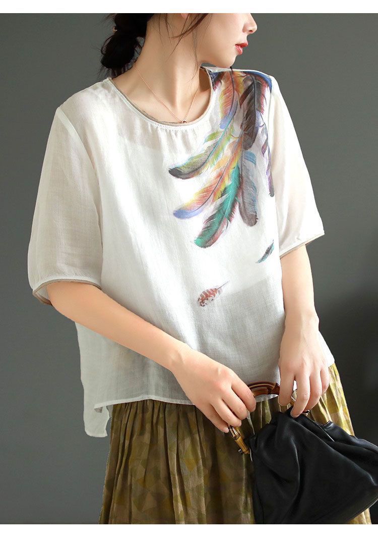 復古印花高端棉麻T恤【買一送一】象牙白+藕色各一件(每件499元)