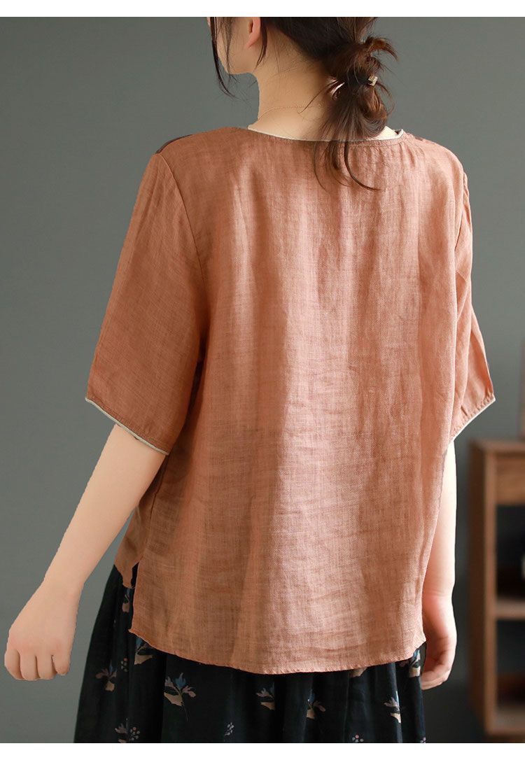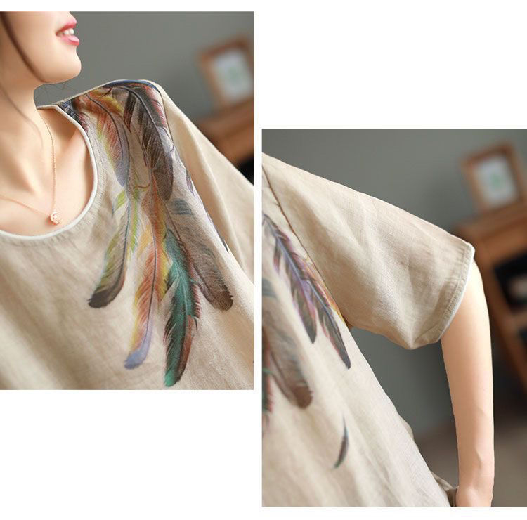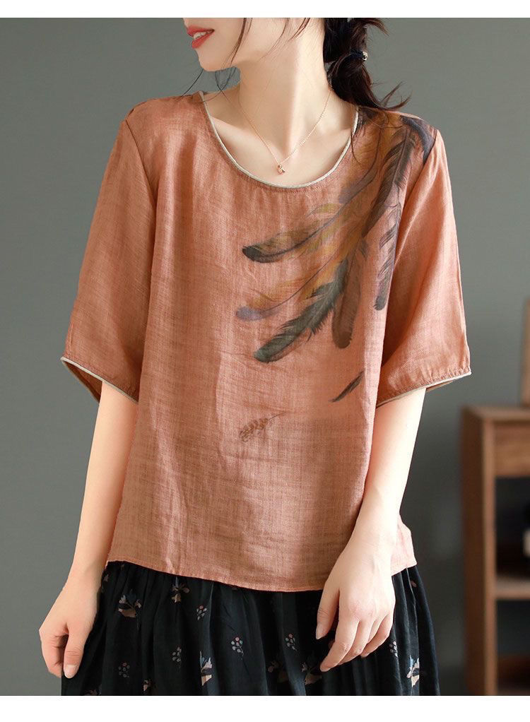 復古印花高端棉麻T恤【買一送一】原麻色+藕色各一件(每件499元)