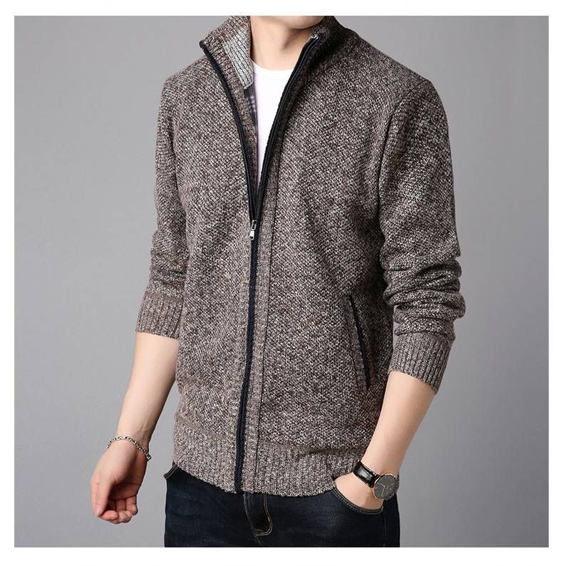 加厚立領男士針織外套【買一送一】【褐色】+【深灰色】各一件(到手兩件,每件649元!)