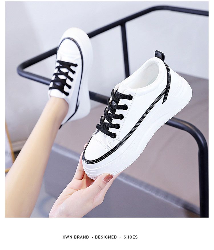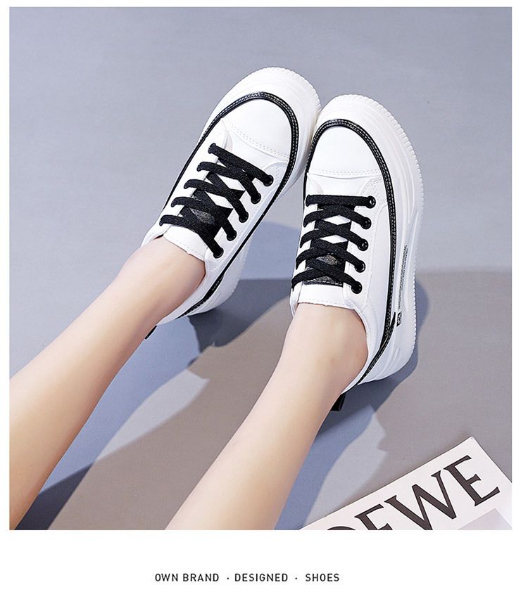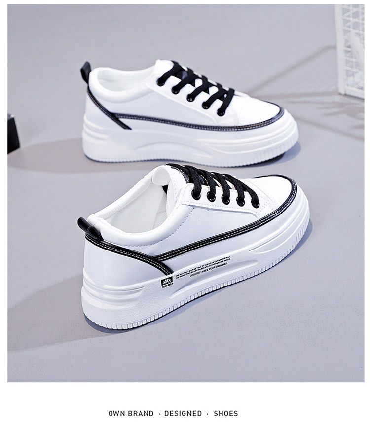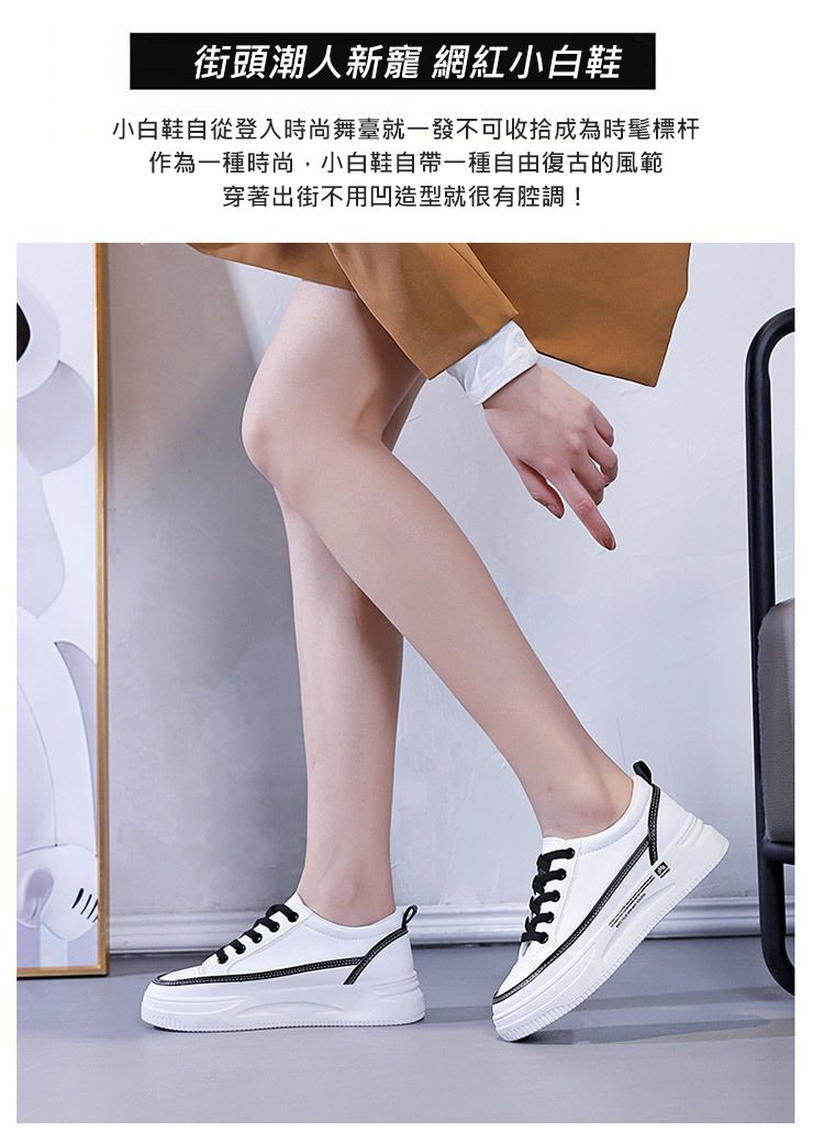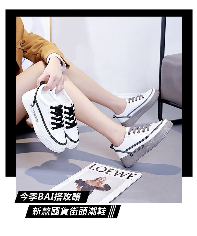 【柔軟!輕彈!增高!】韓版厚底透氣休閒女鞋【白黑】一雙