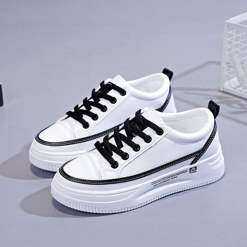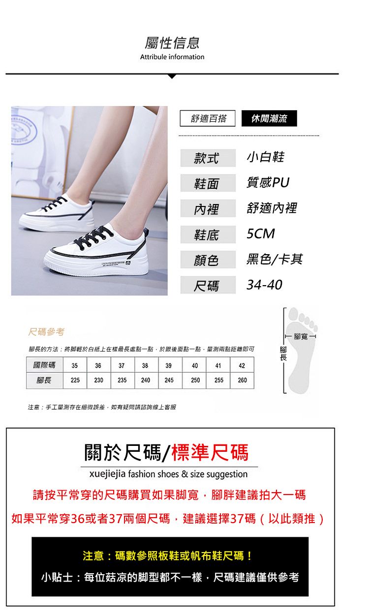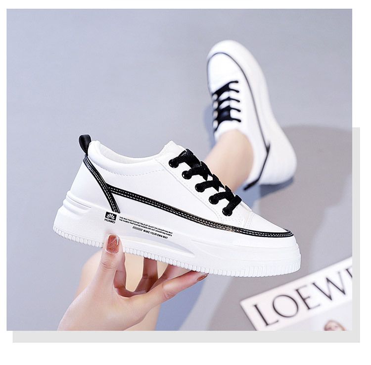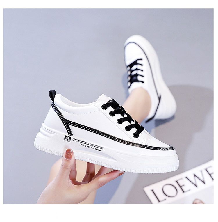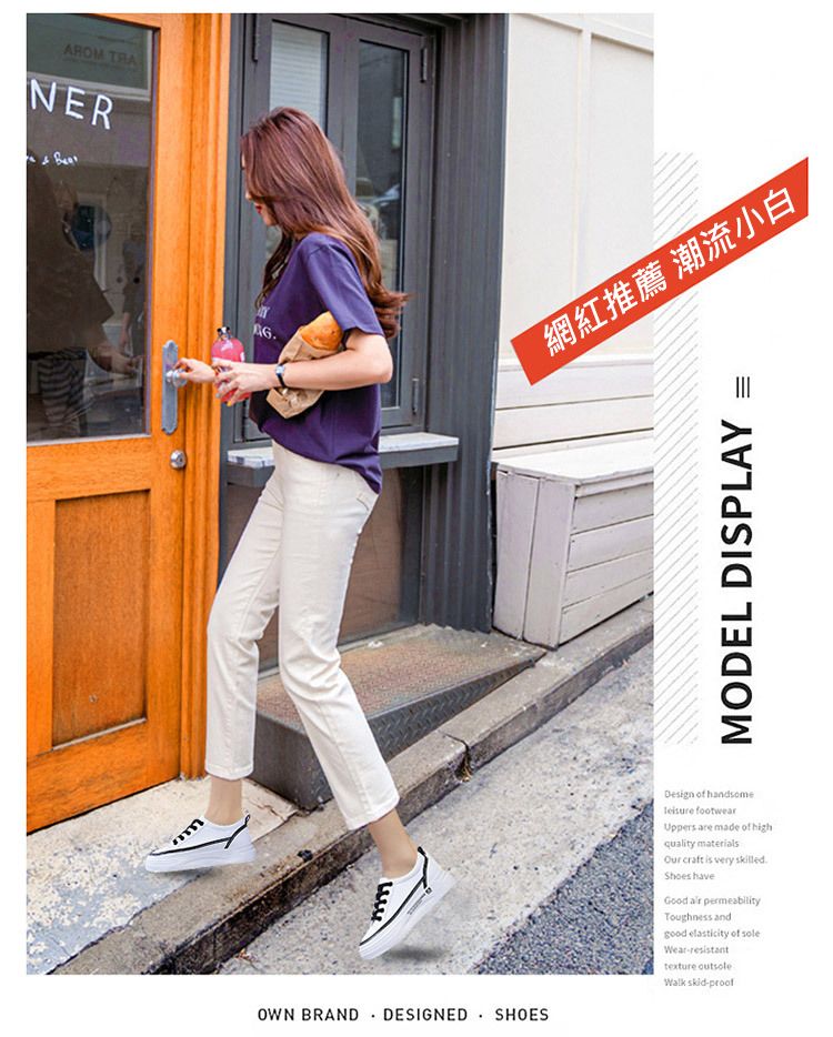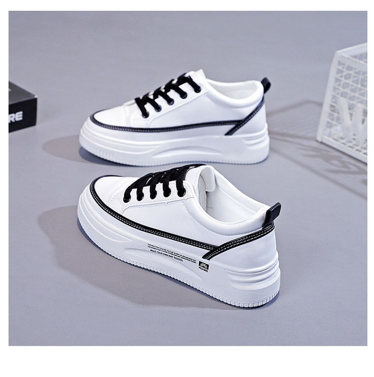 【柔軟!輕彈!增高!】韓版厚底透氣休閒女鞋【白黑】一雙