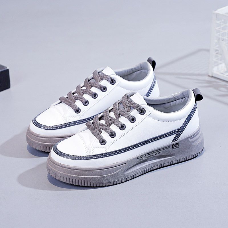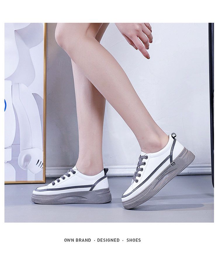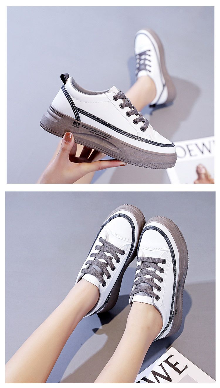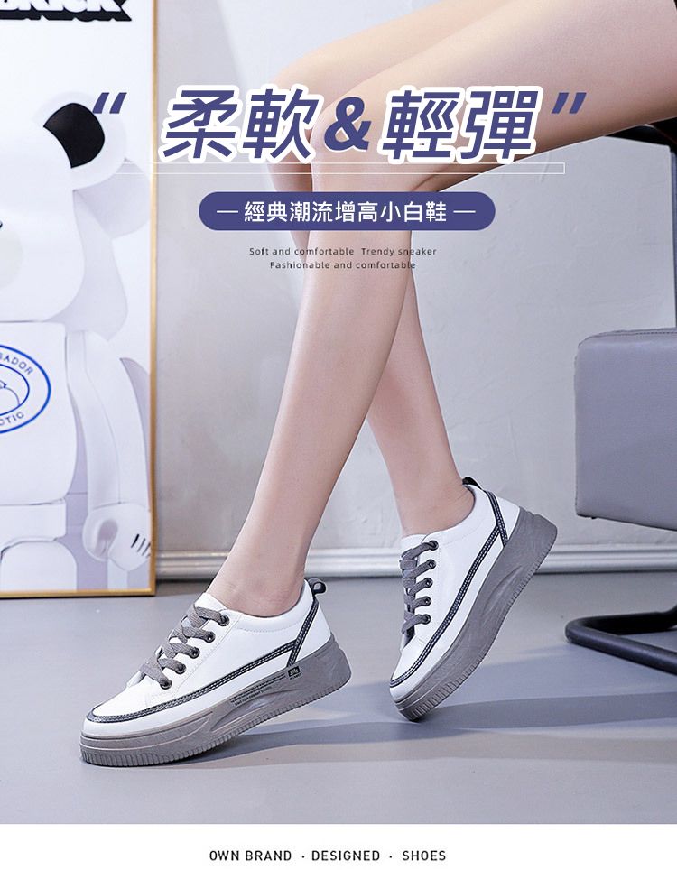 【柔軟!輕彈!增高!】韓版厚底透氣休閒女鞋【白灰】一雙