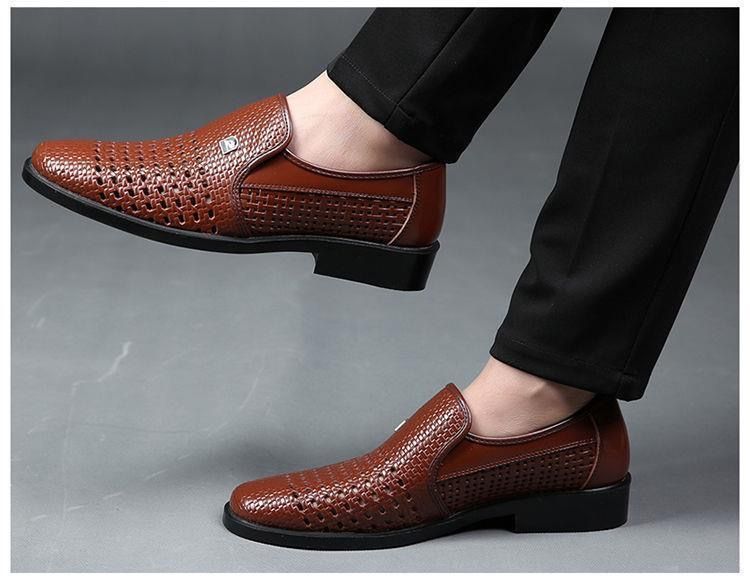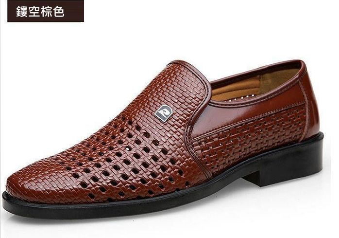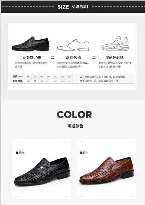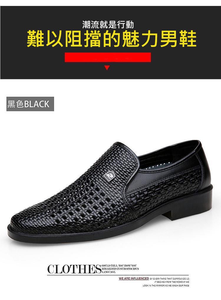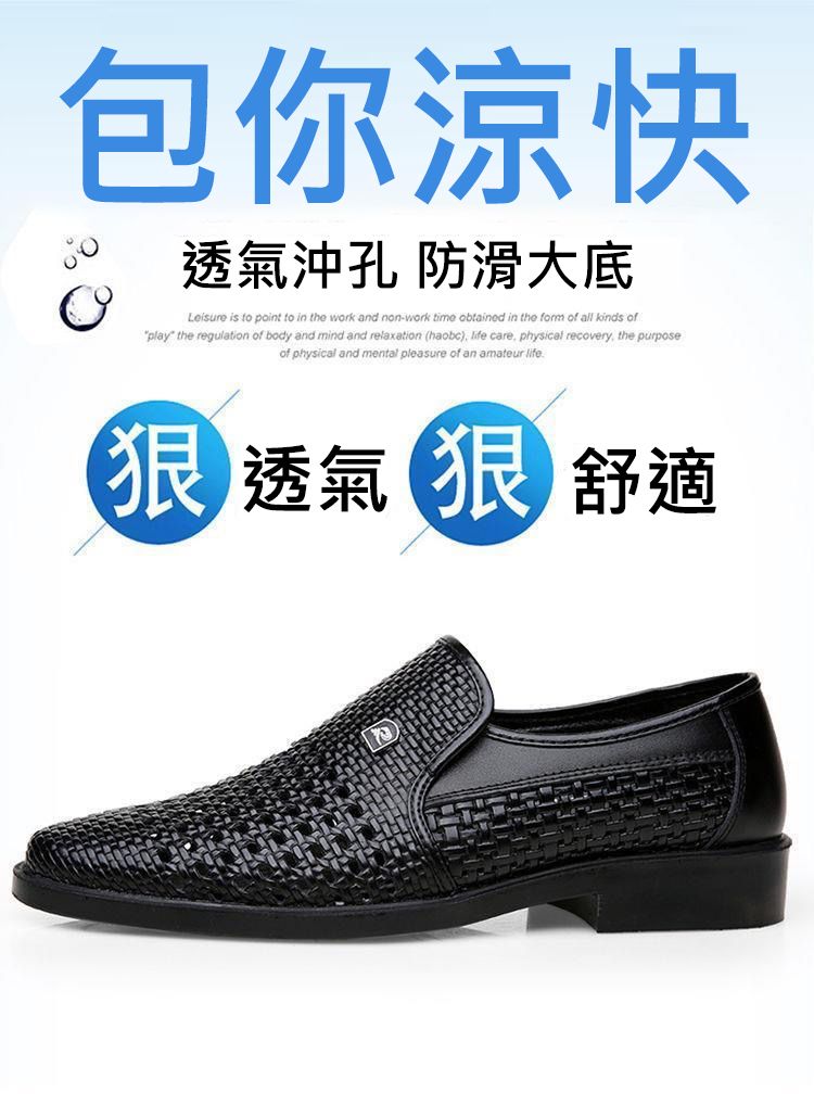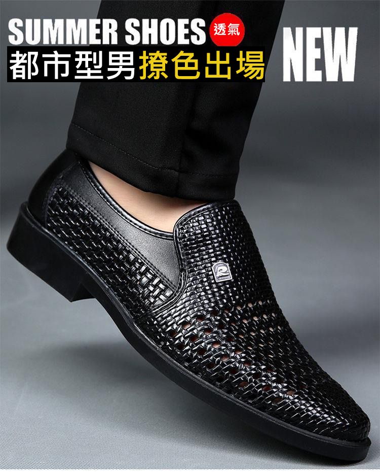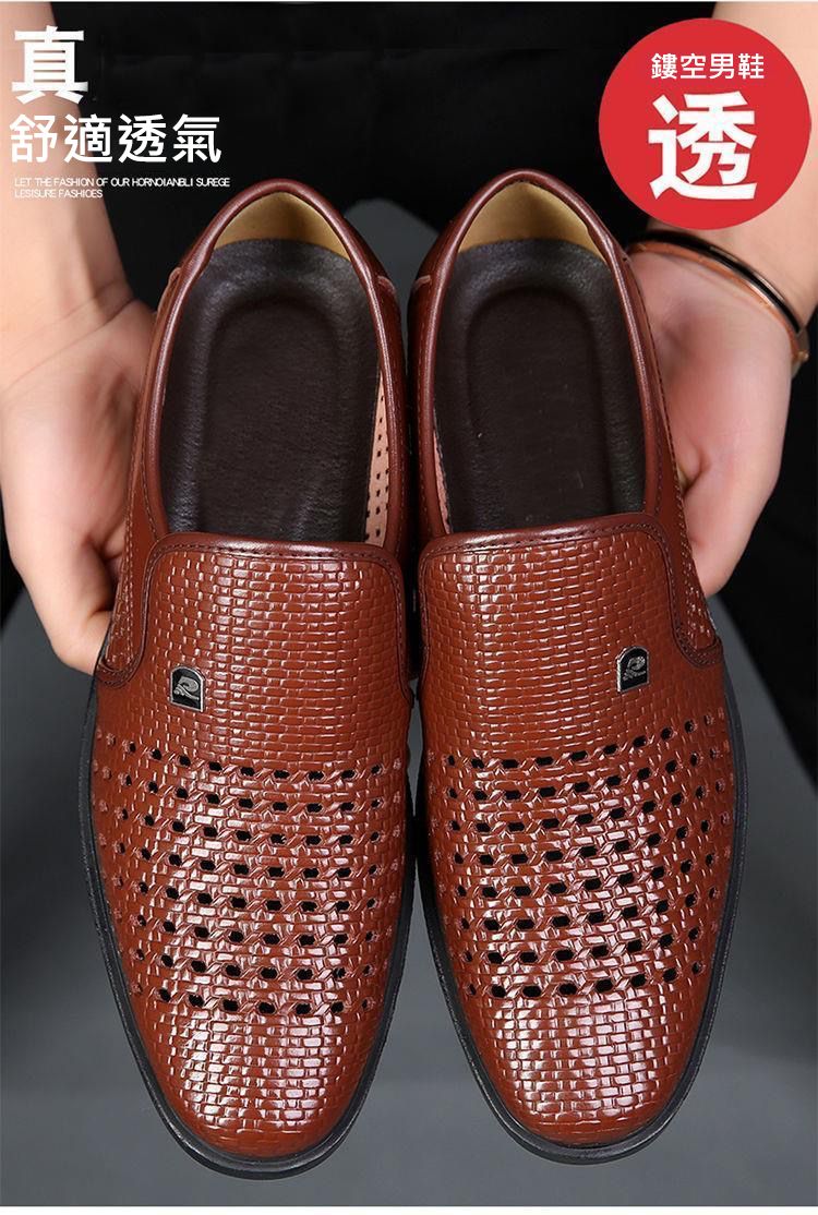 【熱賣特價!買一送一!】男士鏤空透氣皮鞋【黑色】+【棕色】各一雙