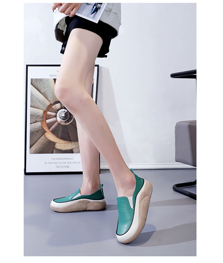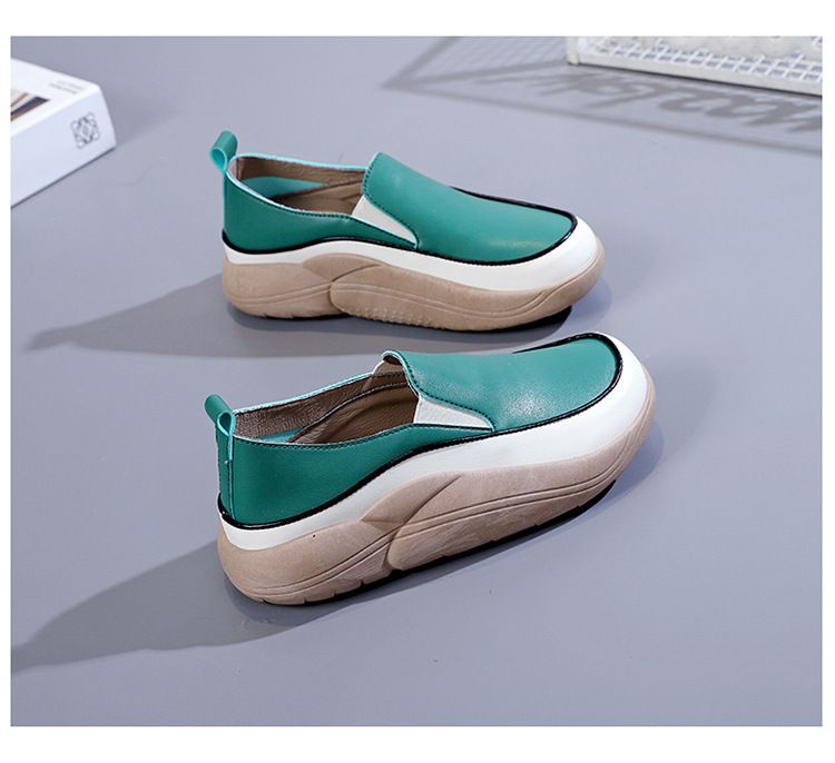 【純色皮革】女士一腳蹬厚底增高休閒小皮鞋【綠色】一雙