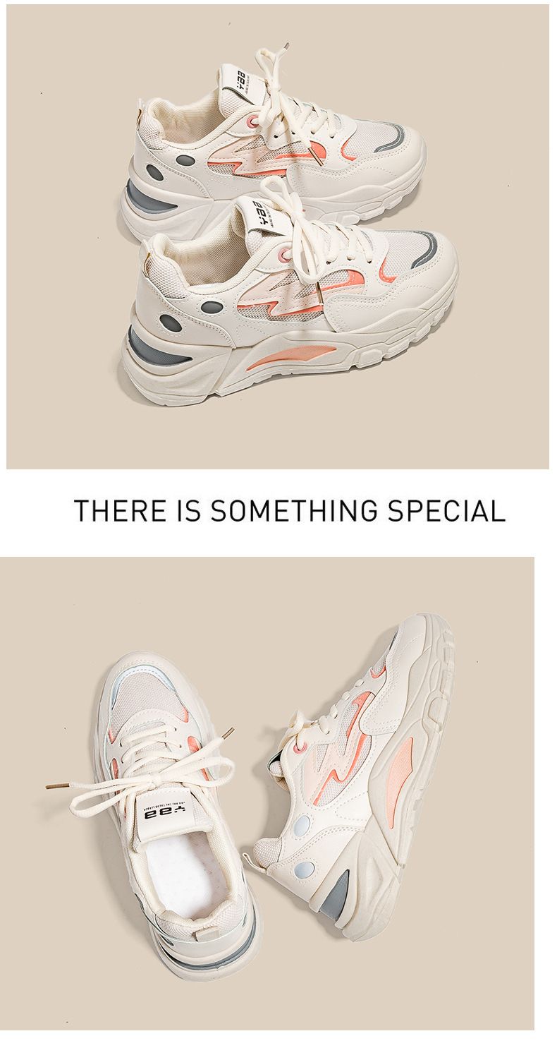 女士網面透氣百搭休閒拼色運動鞋【米粉色】一雙
