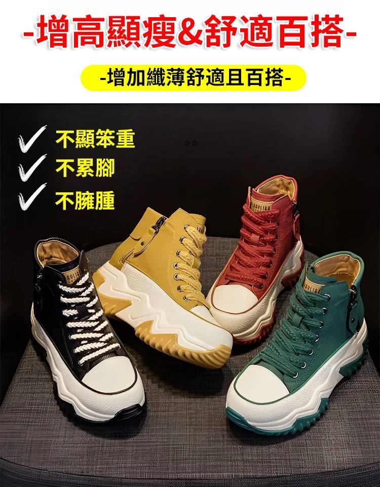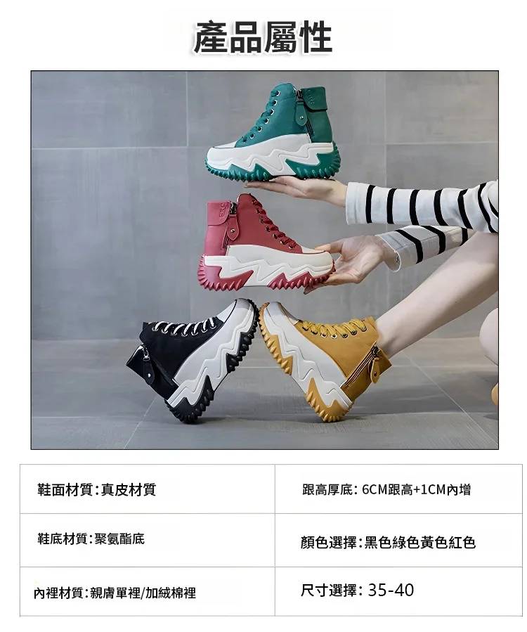 高幫百搭增高雙拉鏈女靴【限時買一送一】黃色+綠色各一雙(到手兩雙,每雙749元!)