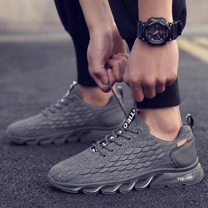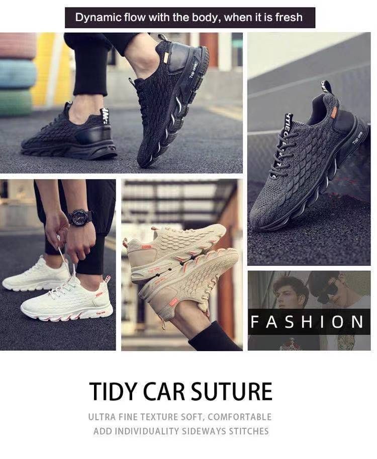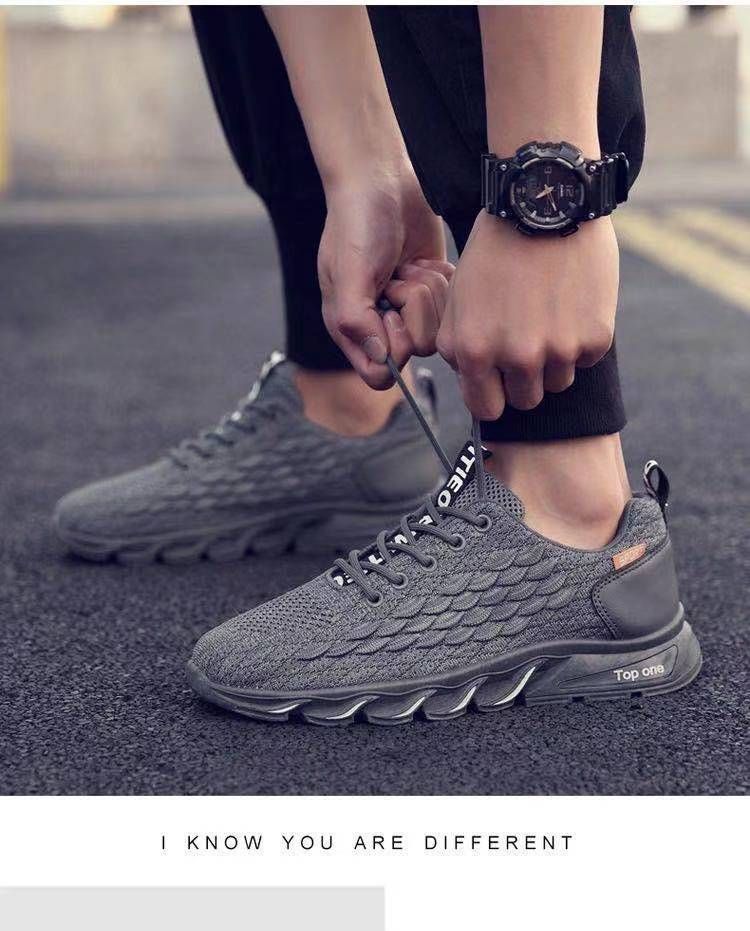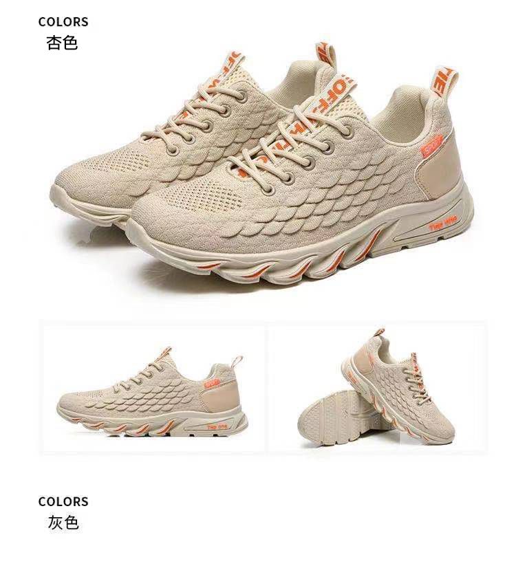 【輕質如翼!】男士飛織網面平底休閒運動鞋【杏色】+【灰色】各一雙(優惠400)