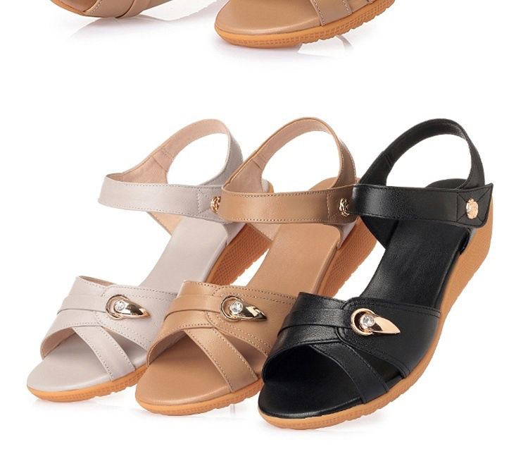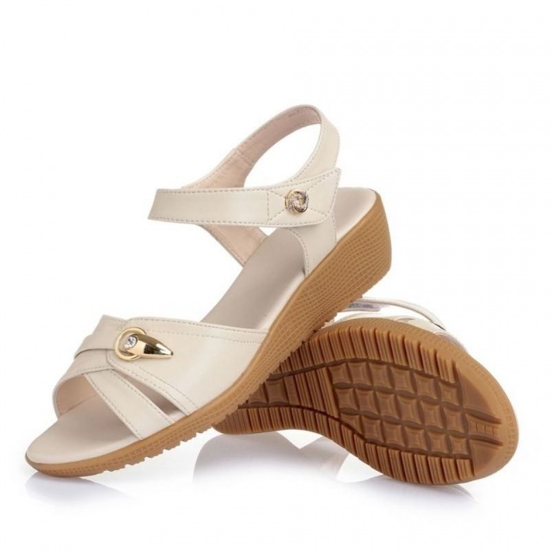 【告別磨腳!】軟皮防滑百搭女士涼鞋【米白色】一雙