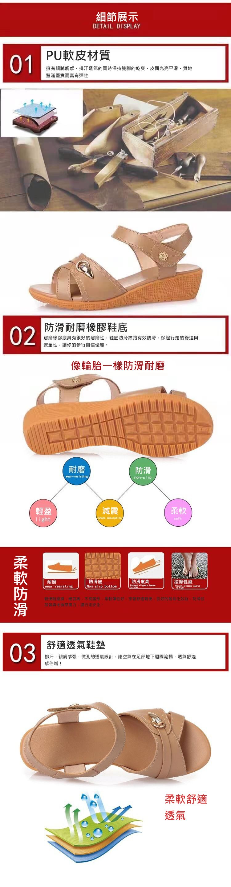 【告別磨腳!】軟皮防滑百搭女士涼鞋【駝色】一雙