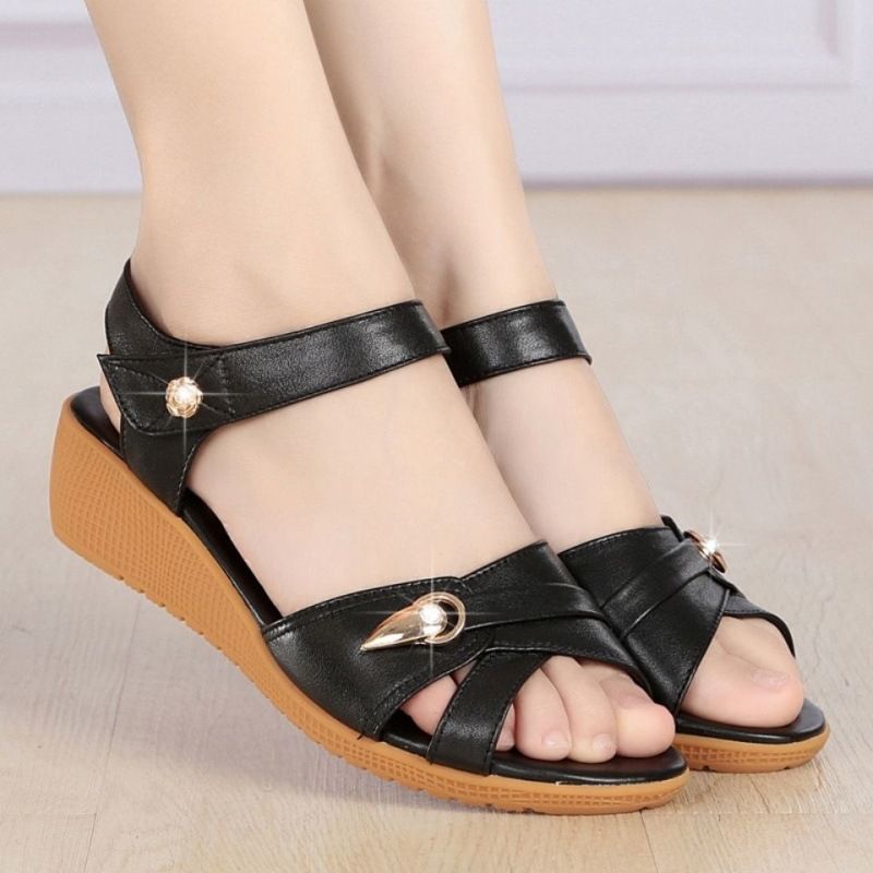 【告別磨腳!】軟皮防滑百搭女士涼鞋【黑色】一雙