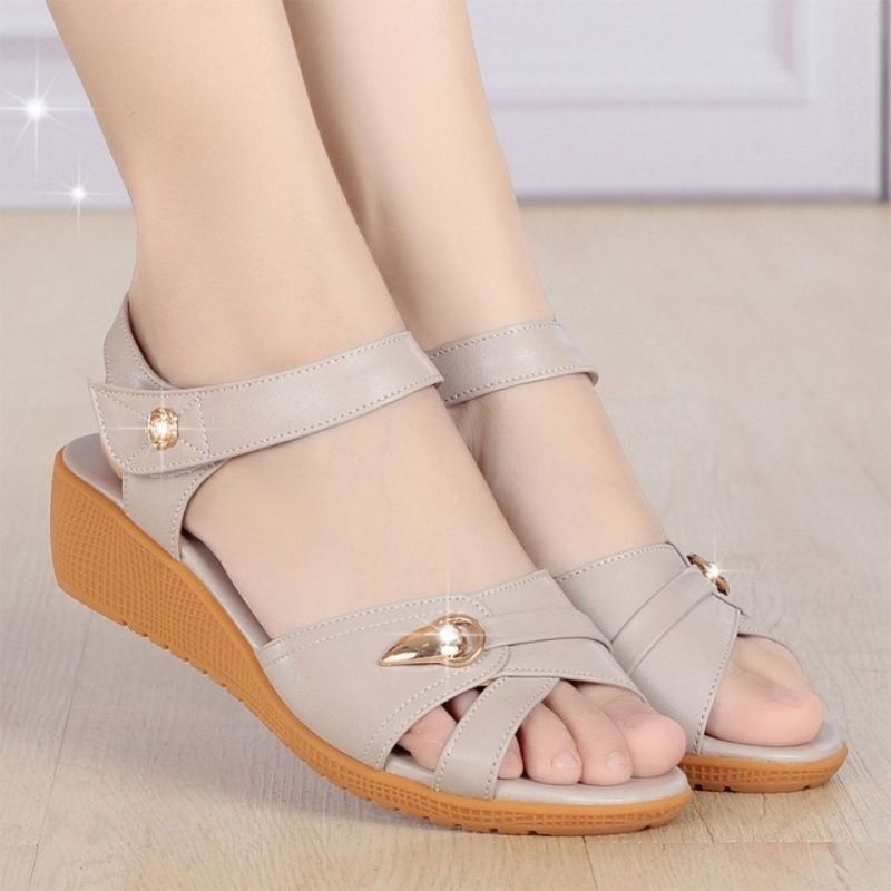 【告別磨腳!】軟皮防滑百搭女士涼鞋【淺灰色】一雙
