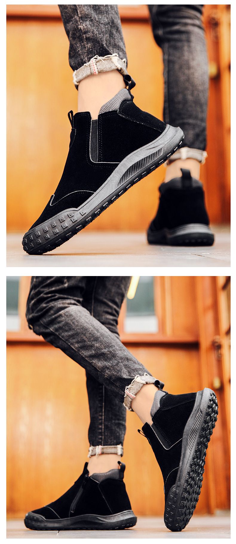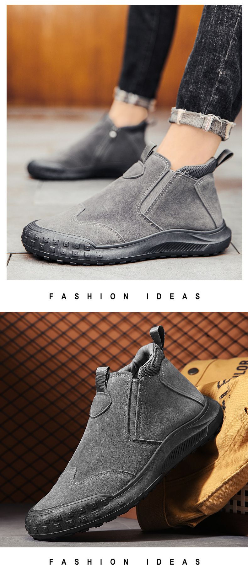 【“潮有範”】男士耐磨防滑一腳蹬工裝鞋【灰色】+【黑色】各一雙(優惠400)