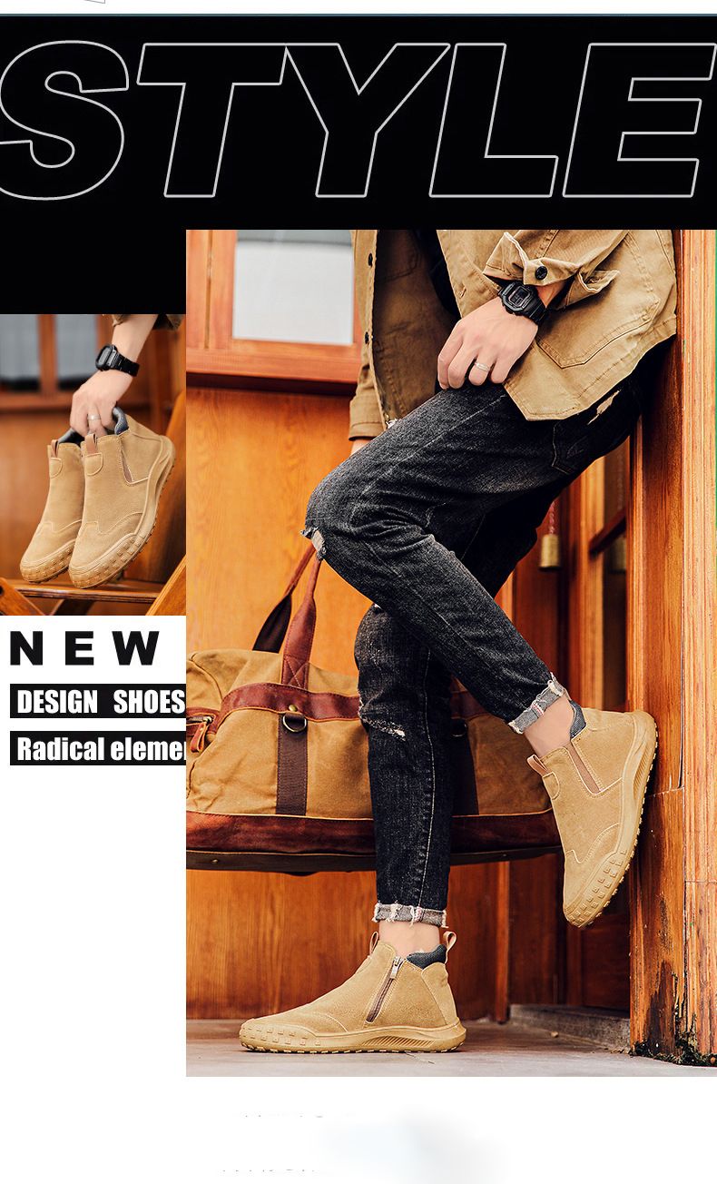 【“潮有範”】男士耐磨防滑一腳蹬工裝鞋【卡其色】+【黑色】各一雙(優惠400)
