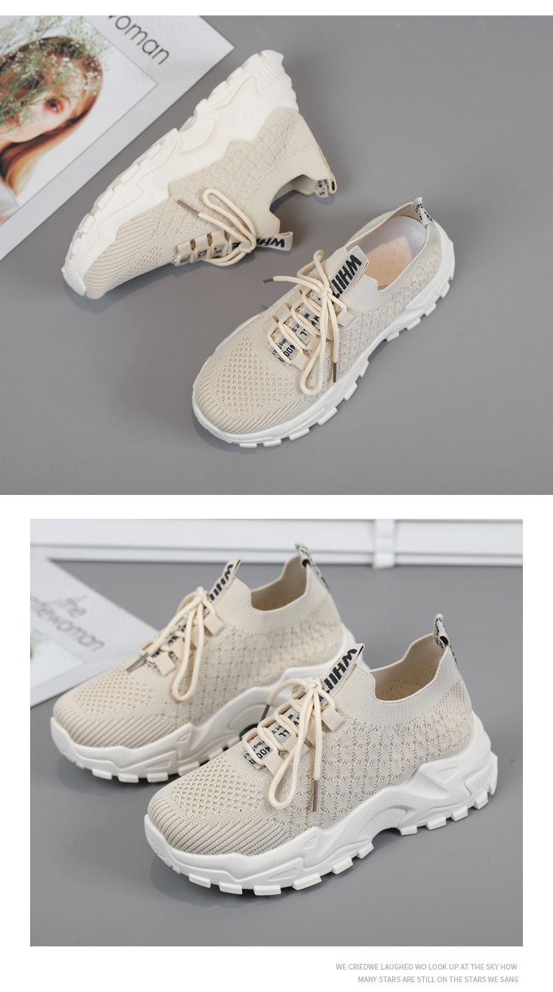 女士青春潮流時尚運動厚底運動鞋【買一送一】【白色】+【卡其色】各一雙