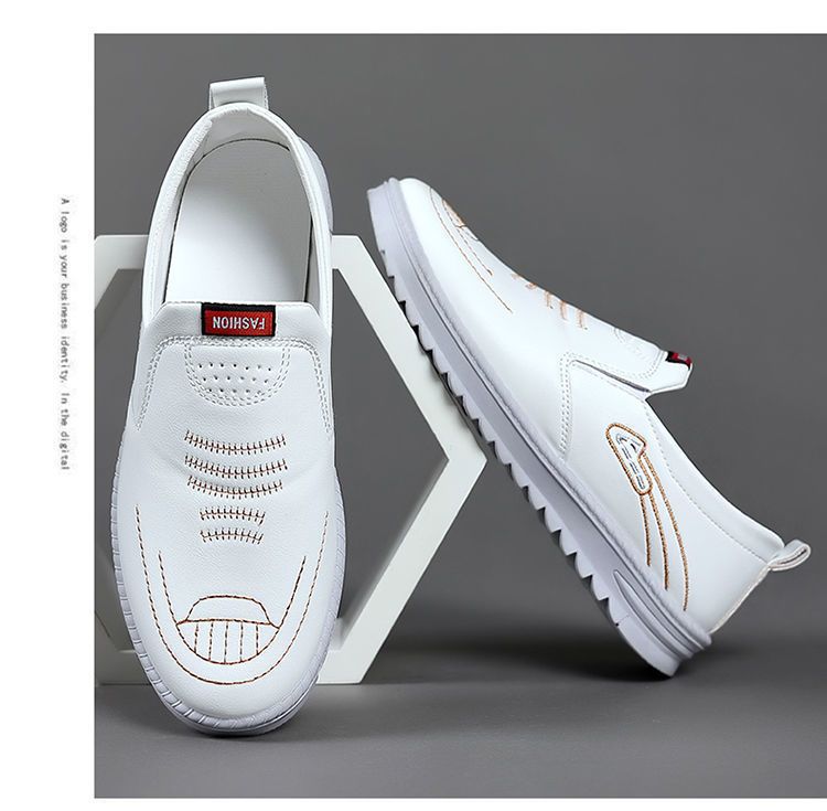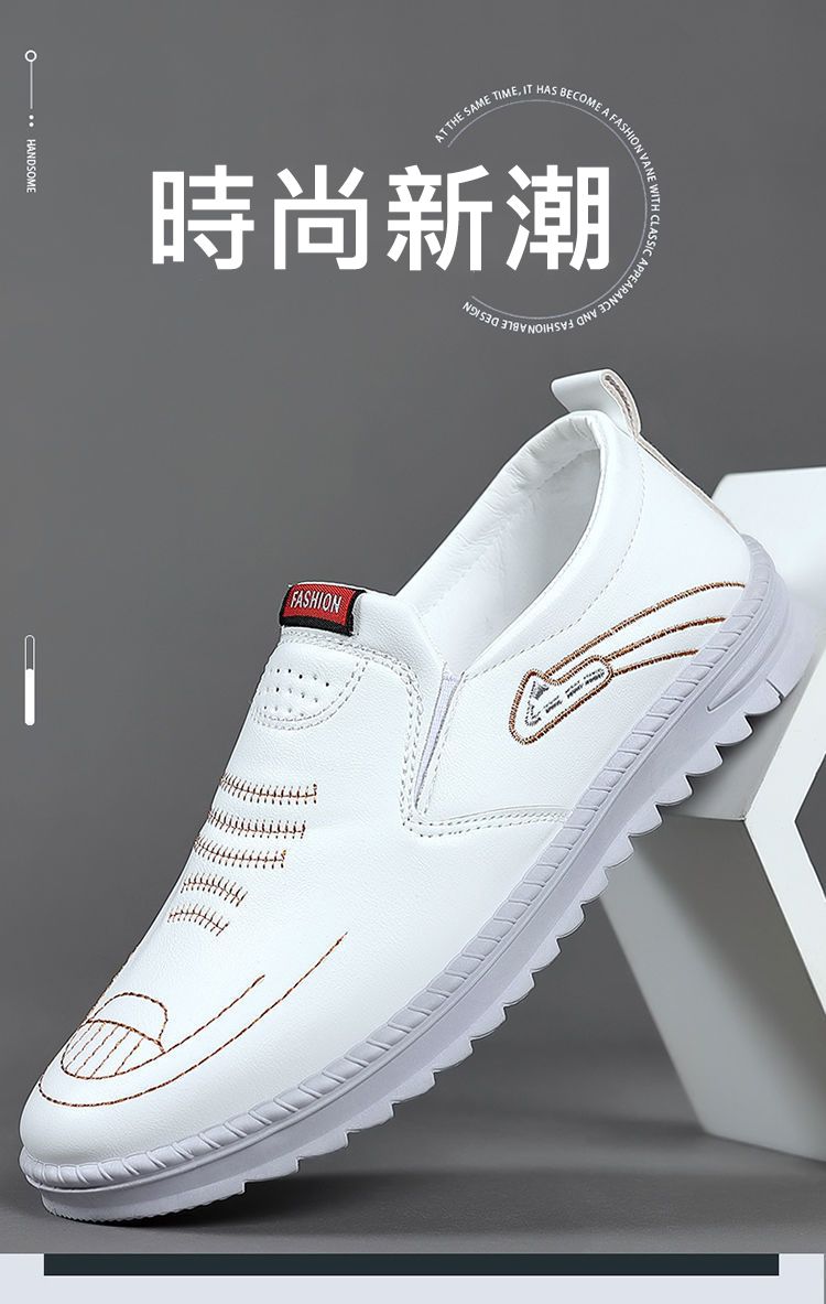 男士商務休閒駕車防滑軟底純牛皮鞋【買一送一】【白色】兩雙