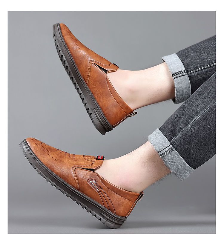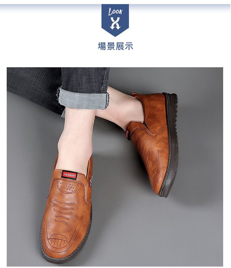 男士商務休閒駕車防滑軟底純牛皮鞋【買一送一】【棕色】+【白色】各一雙