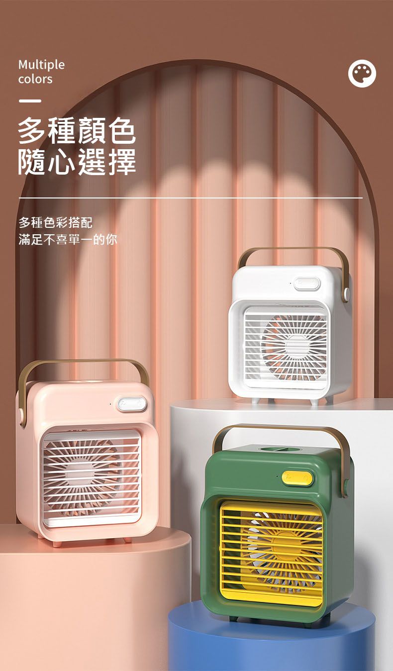 三檔靜音噴霧加濕冷風機【綠色充電款】+【粉色充電款】各一組(優惠400)