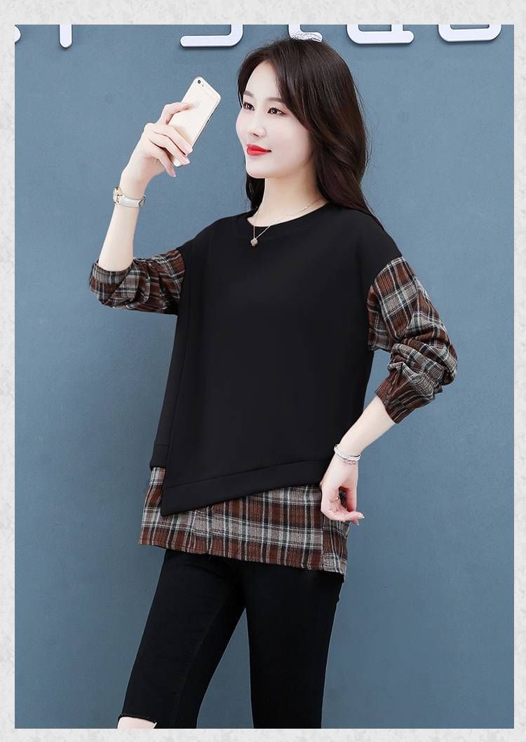 格子拼接純棉假兩件套【秒殺4件!】黑色+咖色各兩件(到手四件,每件399元!)