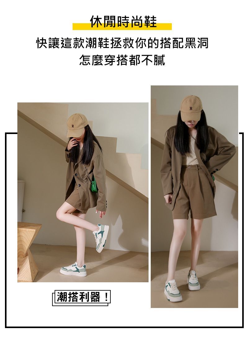 【各種場合隨心穿!】新款女士春季韓版休閒板鞋【米色】+【米綠色】各一雙(優惠400)