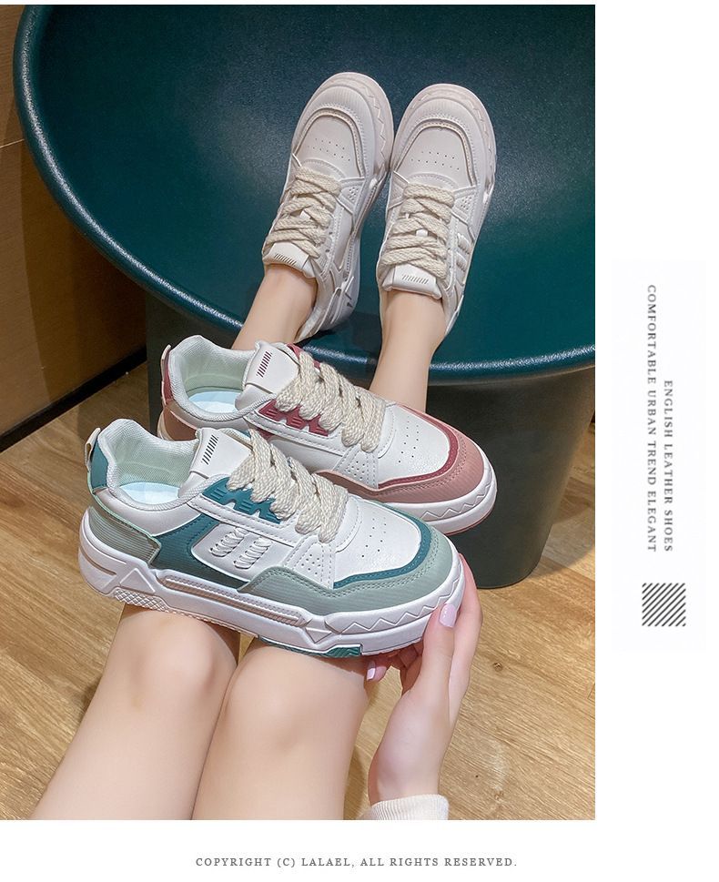 【各種場合隨心穿!】新款女士春季韓版休閒板鞋【米粉色】+【米綠色】各一雙(優惠400)
