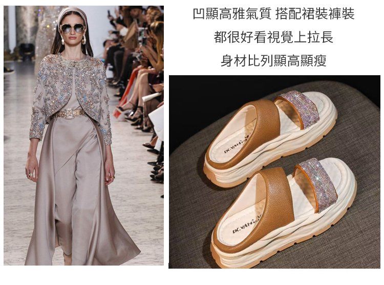 時尚爆款閃耀水鑽涼拖【香芋色】+【奶茶色】各一雙