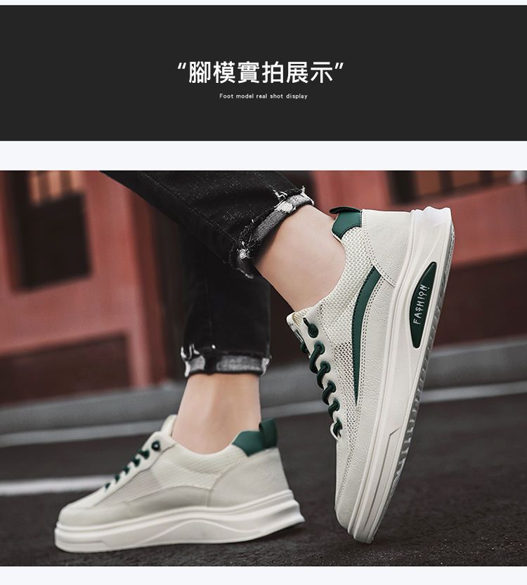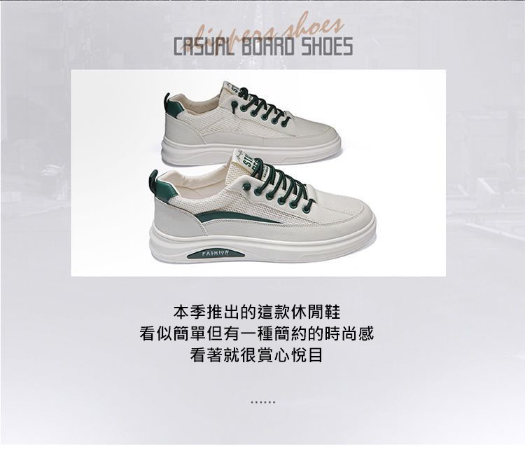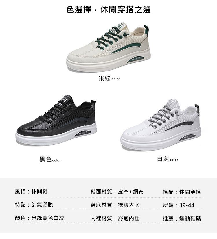 【透光透氣百搭】春季新款男士皮革網布運動鞋【白色】+【米色】各一雙(優惠400)