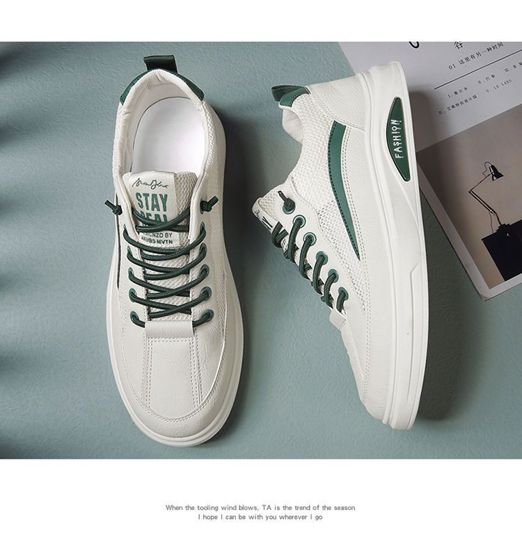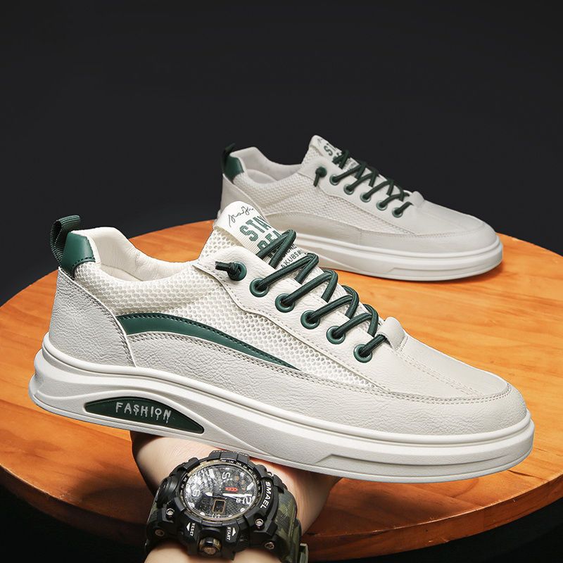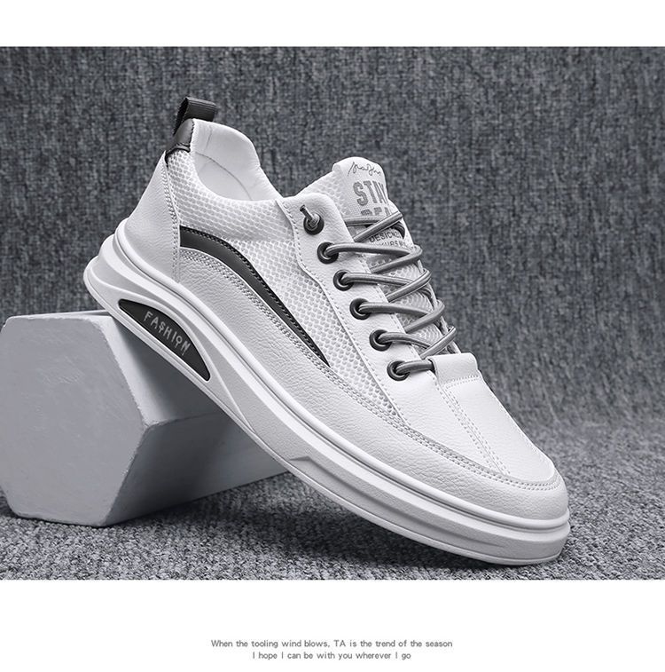 【透光透氣百搭】春季新款男士皮革網布運動鞋【白色】一雙