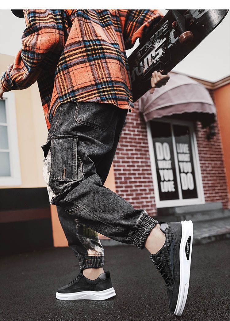 【透光透氣百搭】春季新款男士皮革網布運動鞋【黑色】一雙
