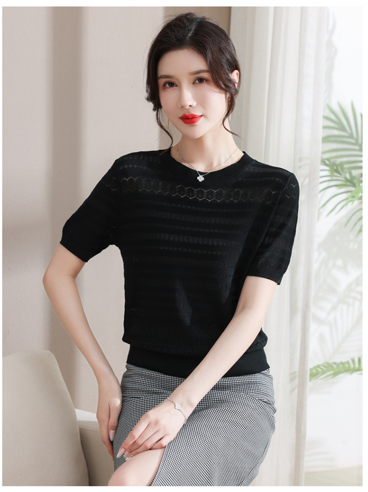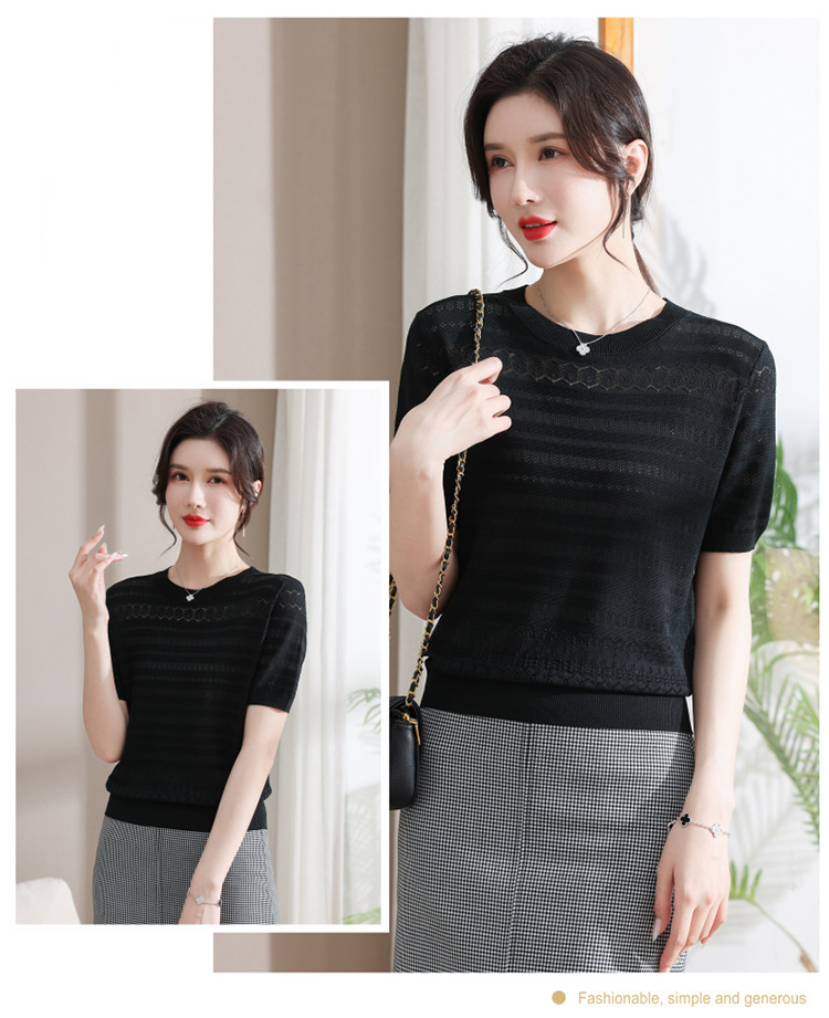 圓領薄款冰絲短袖【黑色】一件