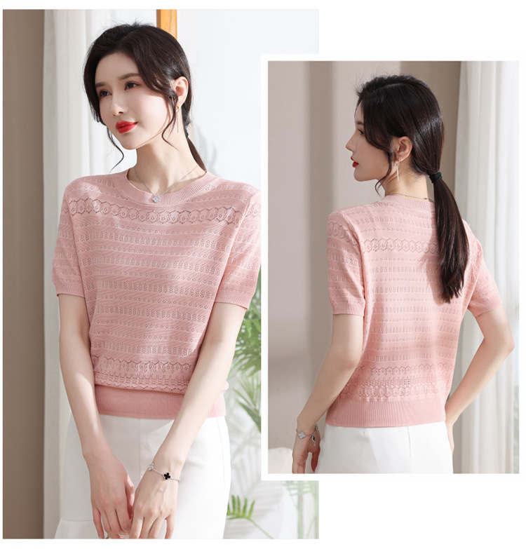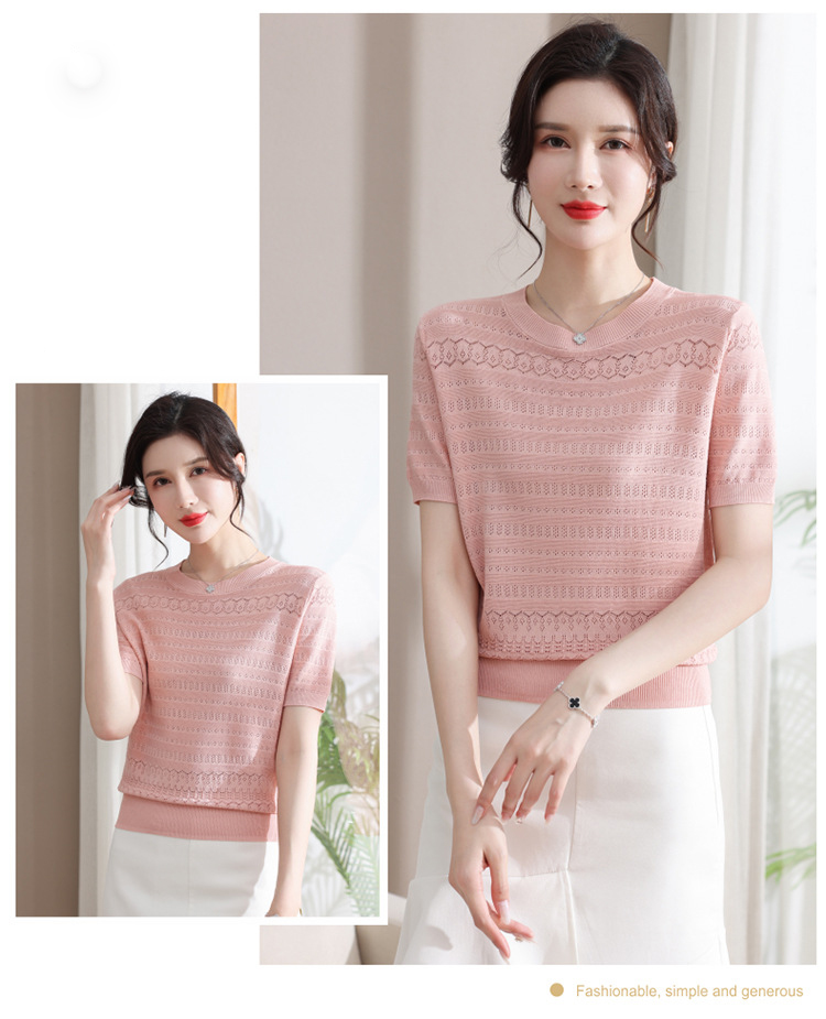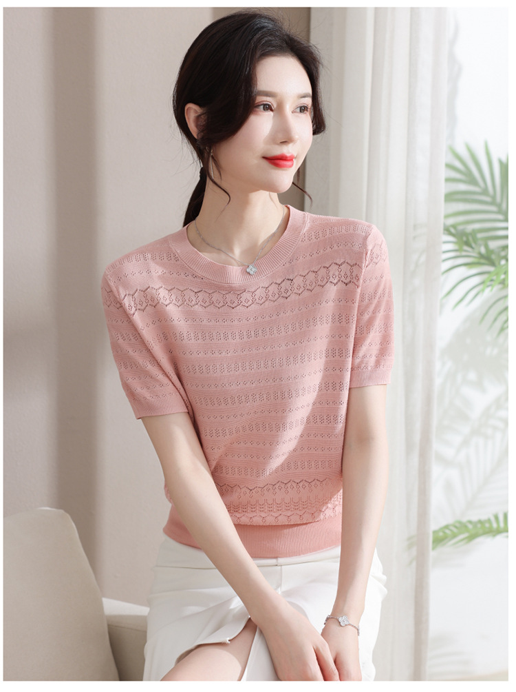 圓領薄款冰絲短袖【粉色】一件