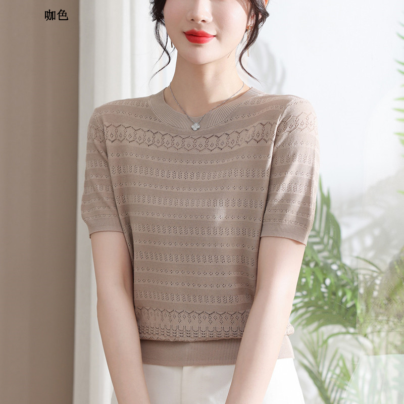 圓領薄款冰絲短袖【咖色】一件