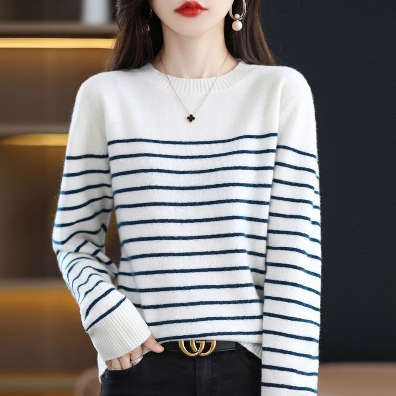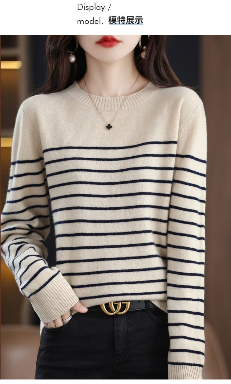 條紋秋冬女士針織衫【買一送二】白色+杏色+駝色各一件(到手三件,每件333元!)