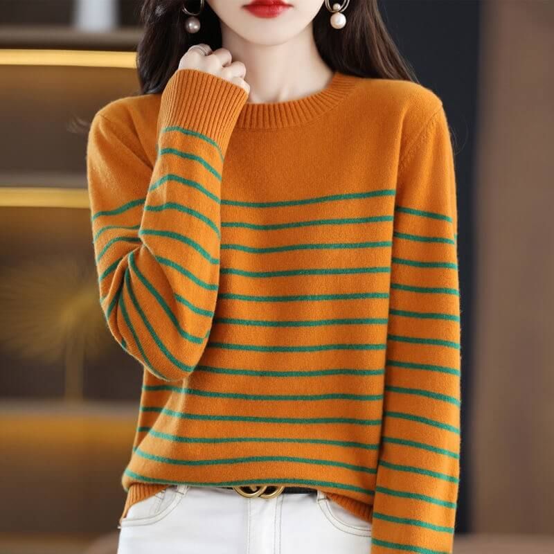 條紋秋冬女士針織衫【買一送二】駝色+桔黃色+黑色各一件(到手三件,每件333元!)