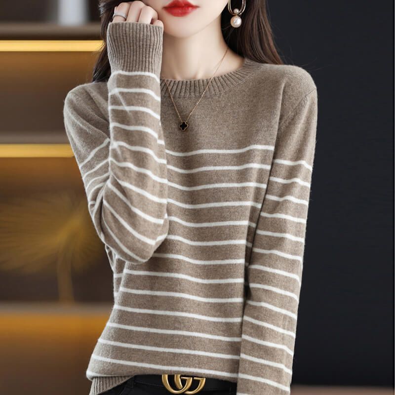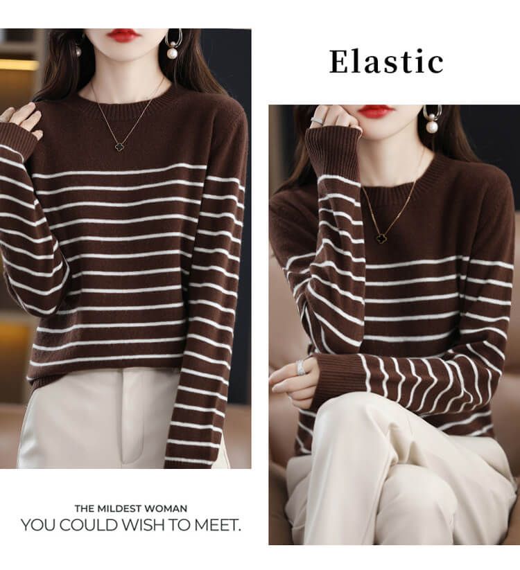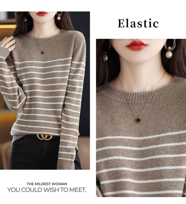 條紋秋冬女士針織衫【買一送二】駝色+咖色+黑色各一件(到手三件,每件333元!)