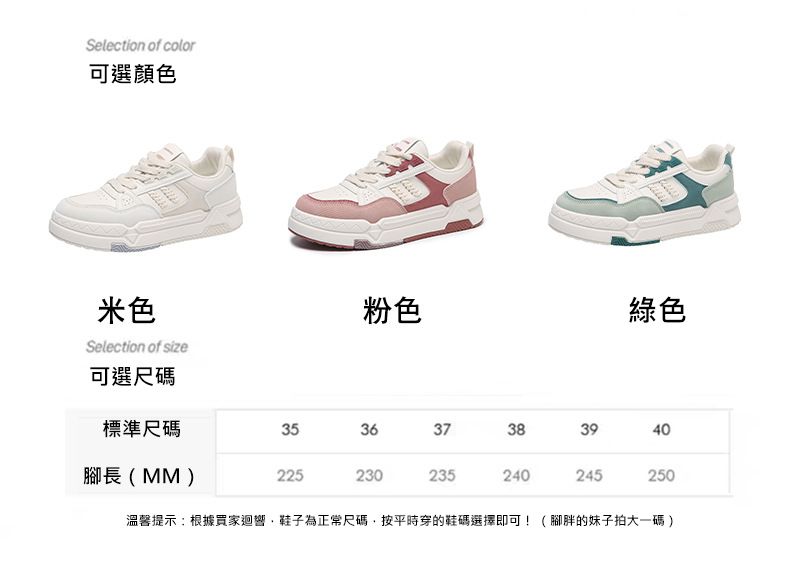 【0退貨!】女士韓版厚底休閒運動板鞋【米粉色】+【米綠色】各一雙(優惠400)