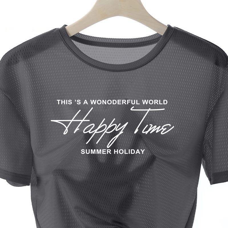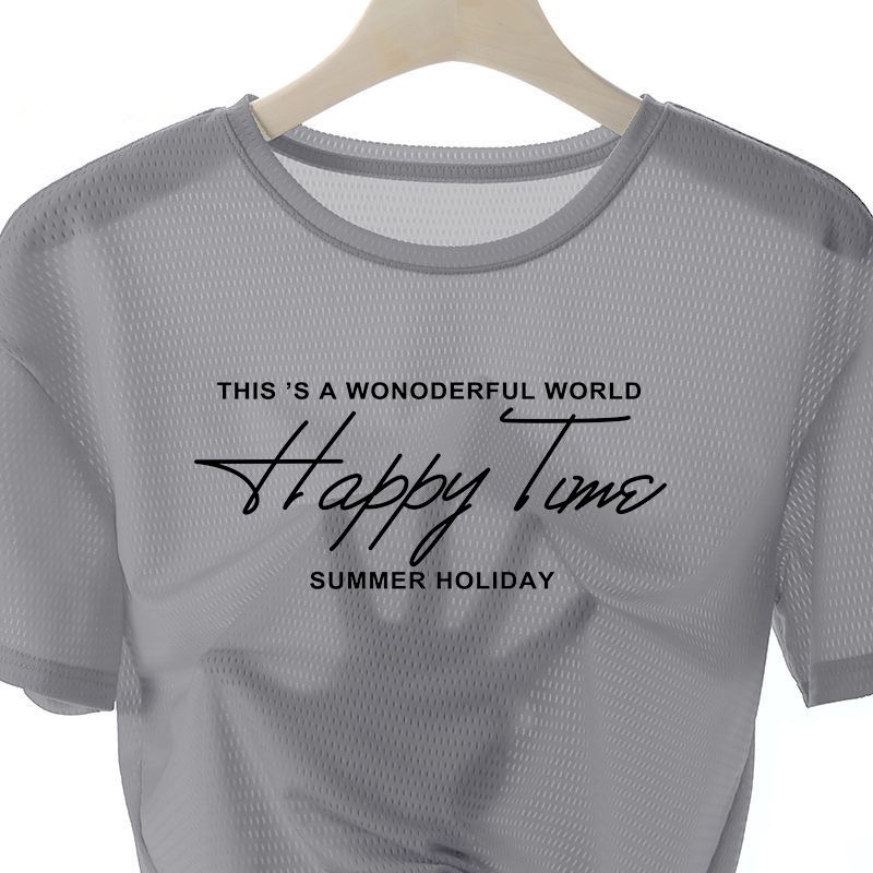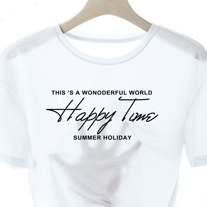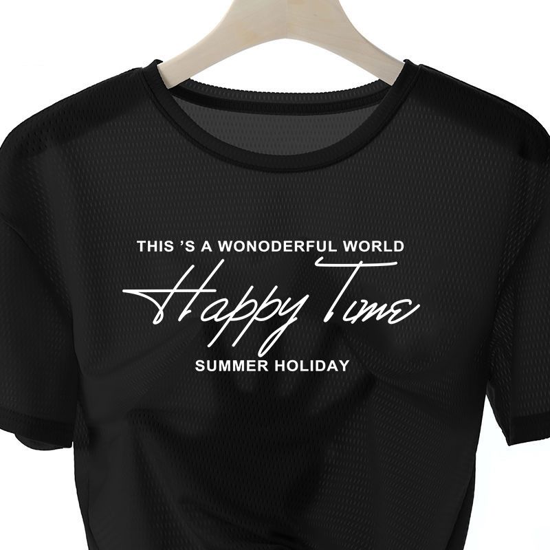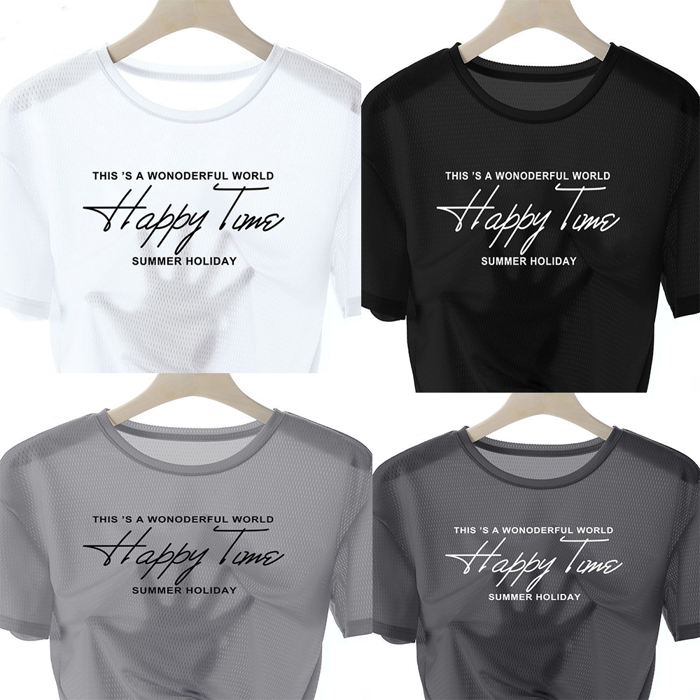 網眼T恤【買一送三】【happy time】白色+黑色+淺灰+深灰各一件(到手4件,每條249元!)