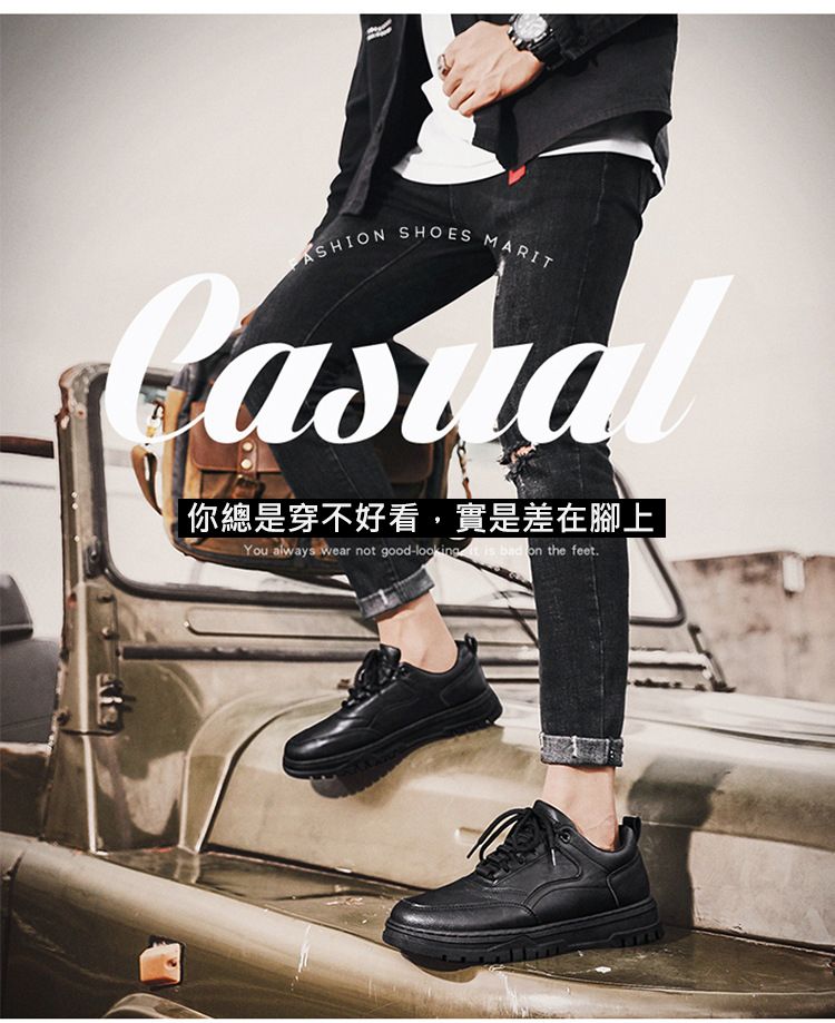 【源頭廠家】細膩皮革鞋面柔軟耐穿大底男士低幫馬丁靴【黑白色】+【全黑色】各一雙(優惠400)
